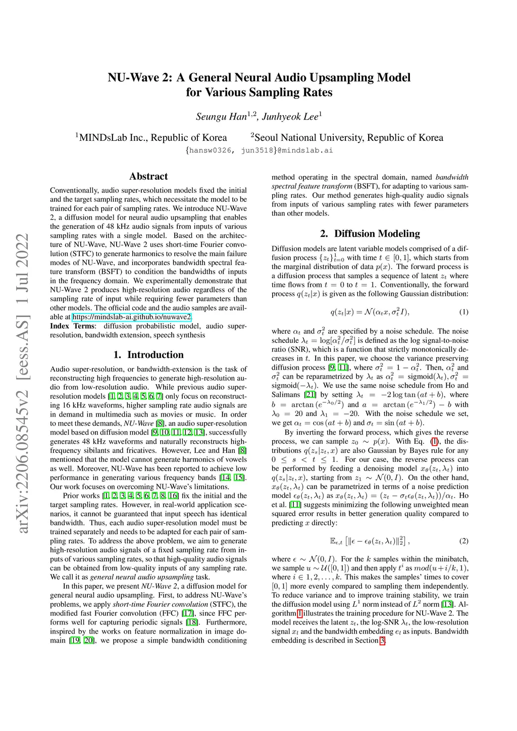 Conventionally, audio super-resolution models fixed the initial and the target sampling rates, which necessitate the model to be trained for each pair of sampling rates. We introduce NU-Wave 2, a diffusion model for neural audio upsampling that enables the generation of 48 kHz audio signals from inputs of various sampling rates with a single model. Based on the architecture of NU-Wave, NU-Wave 2 uses short-time Fourier convolution (STFC) to generate harmonics to resolve the main failure modes of NU-Wave, and incorporates bandwidth spectral feature transform (BSFT) to condition the bandwidths of inputs in the frequency domain. We experimentally demonstrate that NU-Wave 2 produces high-resolution audio regardless of the sampling rate of input while requiring fewer parameters than other models. The official code and the audio samples are available at https://mindslab-ai.github.io/nuwave2.