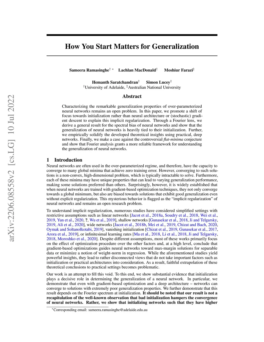 Characterizing the remarkable generalization properties of over-parameterized neural networks remains an open problem. In this paper, we promote a shift of focus towards initialization rather than neural architecture or (stochastic) gradient descent to explain this implicit regularization. Through a Fourier lens, we derive a general result for the spectral bias of neural networks and show that the generalization of neural networks is heavily tied to their initialization. Further, we empirically solidify the developed theoretical insights using practical, deep networks. Finally, we make a case against the controversial flat-minima conjecture and show that Fourier analysis grants a more reliable framework for understanding the generalization of neural networks.