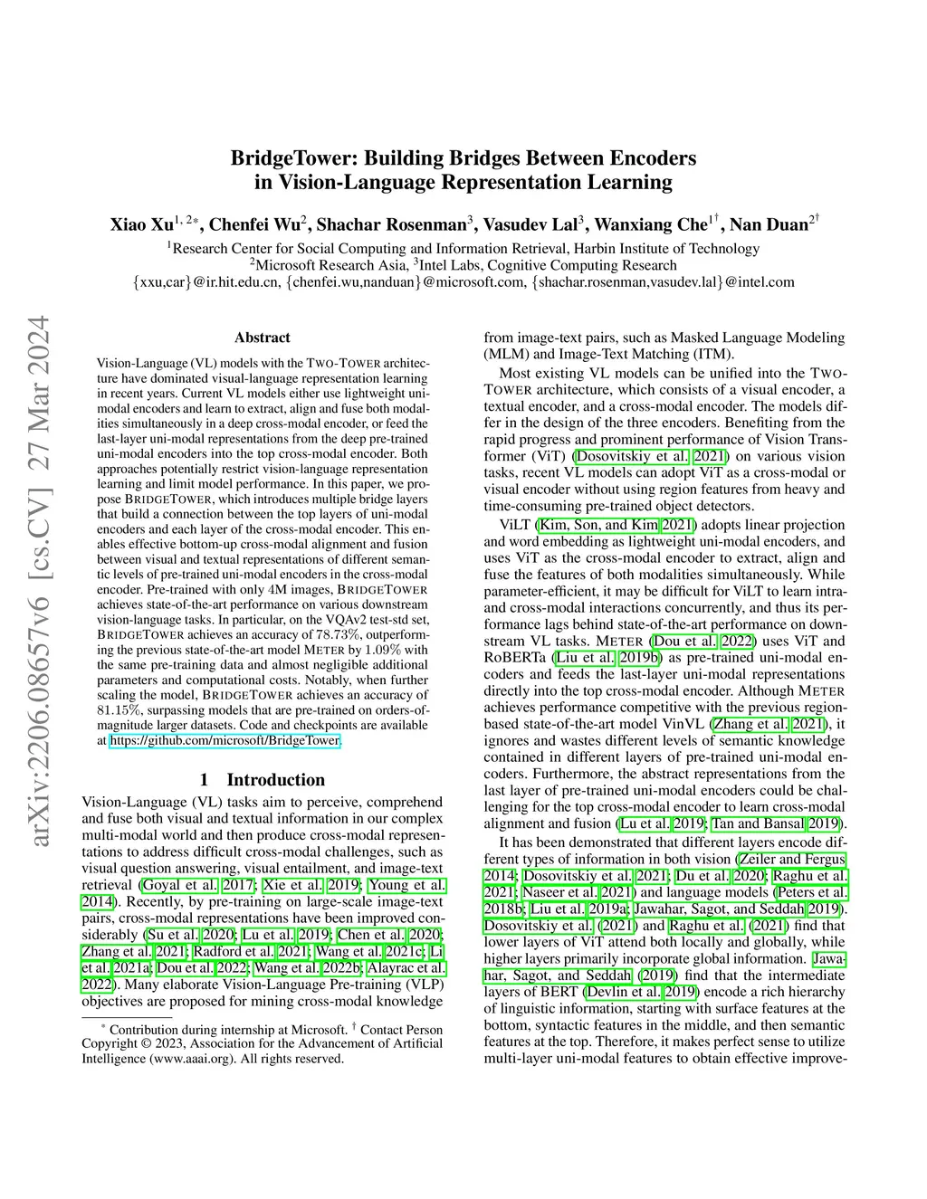 BridgeTower: Building Bridges Between Encoders in Vision-Language