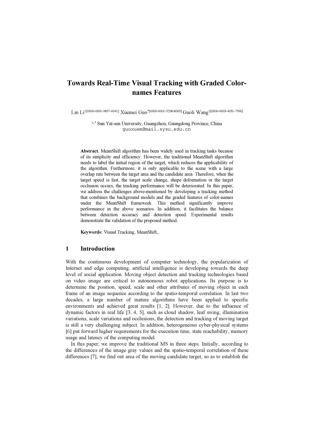 MeanShift algorithm has been widely used in tracking tasks because of its simplicity and efficiency. However, the traditional MeanShift algorithm needs to label the initial region of the target, which reduces the applicability of the algorithm. Furthermore, it is only applicable to the scene with a large overlap rate between the target area and the candidate area. Therefore, when the target speed is fast, the target scale change, shape deformation or the target occlusion occurs, the tracking performance will be deteriorated. In this paper, we address the challenges above-mentioned by developing a tracking method that combines the background models and the graded features of color-names under the MeanShift framework. This method significantly improve performance in the above scenarios. In addition, it facilitates the balance between detection accuracy and detection speed. Experimental results demonstrate the validation of the proposed method.