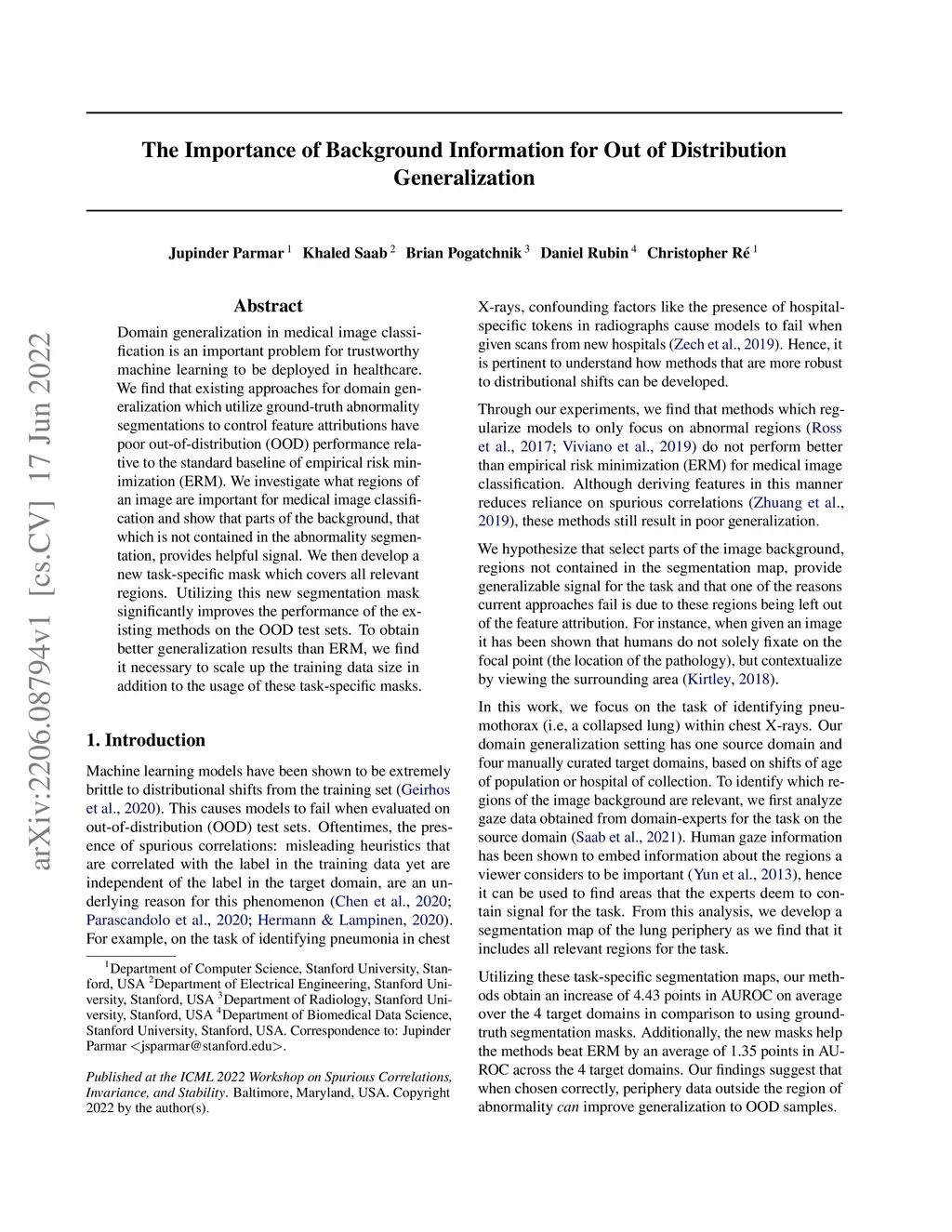 Domain generalization in medical image classification is an important problem for trustworthy machine learning to be deployed in healthcare. We find that existing approaches for domain generalization which utilize ground-truth abnormality segmentations to control feature attributions have poor out-of-distribution (OOD) performance relative to the standard baseline of empirical risk minimization (ERM). We investigate what regions of an image are important for medical image classification and show that parts of the background, that which is not contained in the abnormality segmentation, provides helpful signal. We then develop a new task-specific mask which covers all relevant regions. Utilizing this new segmentation mask significantly improves the performance of the existing methods on the OOD test sets. To obtain better generalization results than ERM, we find it necessary to scale up the training data size in addition to the usage of these task-specific masks.