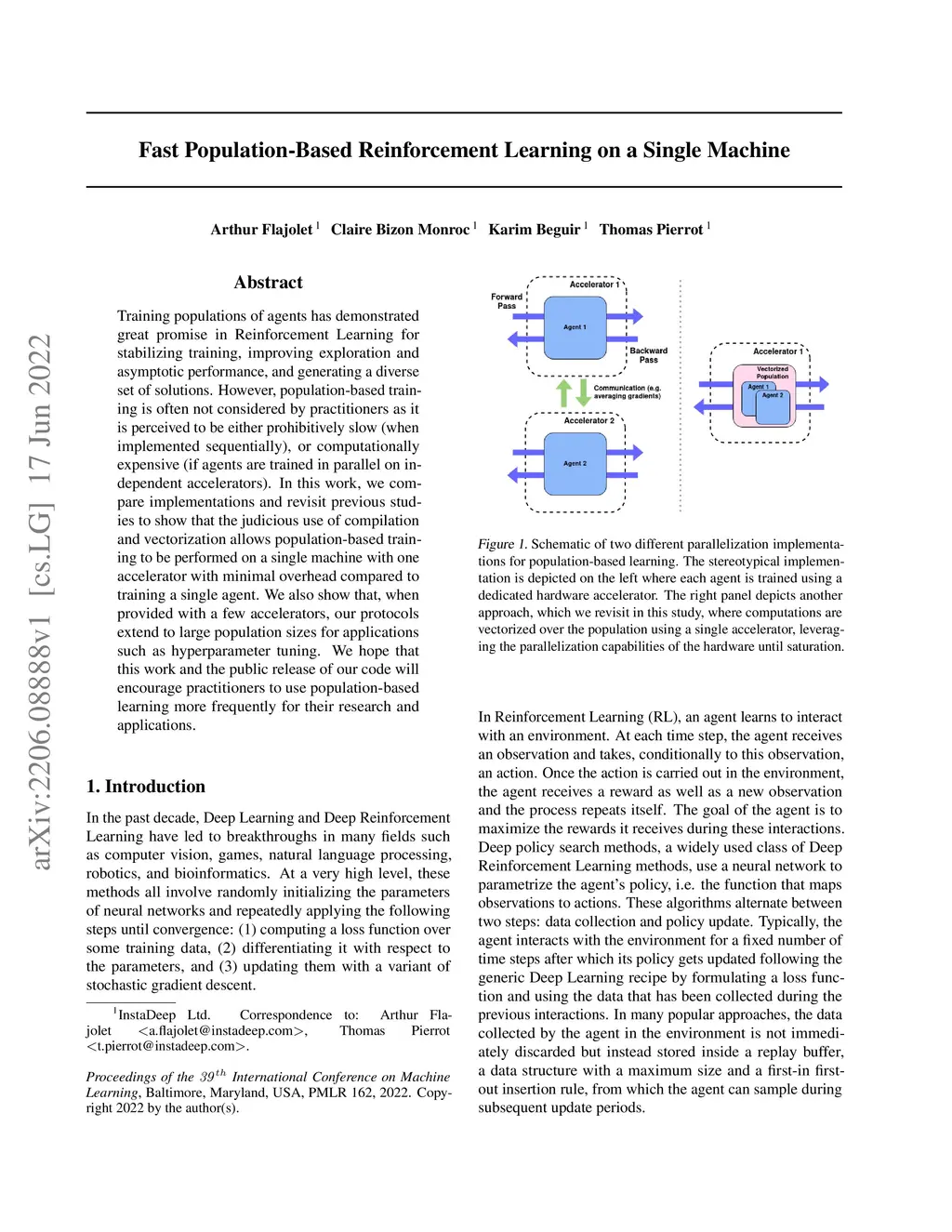 Training populations of agents has demonstrated great promise in Reinforcement Learning for stabilizing training, improving exploration and asymptotic performance, and generating a diverse set of solutions. However, population-based training is often not considered by practitioners as it is perceived to be either prohibitively slow (when implemented sequentially), or computationally expensive (if agents are trained in parallel on independent accelerators). In this work, we compare implementations and revisit previous studies to show that the judicious use of compilation and vectorization allows population-based training to be performed on a single machine with one accelerator with minimal overhead compared to training a single agent. We also show that, when provided with a few accelerators, our protocols extend to large population sizes for applications such as hyperparameter tuning. We hope that this work and the public release of our code will encourage practitioners to use population-based learning more frequently for their research and applications.