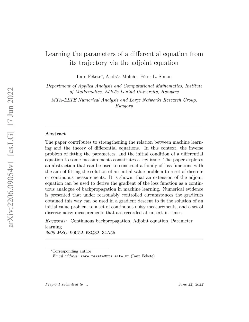 The paper contributes to strengthening the relation between machine learning and the theory of differential equations. In this context, the inverse problem of fitting the parameters, and the initial condition of a differential equation to some measurements constitutes a key issue. The paper explores an abstraction that can be used to construct a family of loss functions with the aim of fitting the solution of an initial value problem to a set of discrete or continuous measurements. It is shown, that an extension of the adjoint equation can be used to derive the gradient of the loss function as a continuous analogue of backpropagation in machine learning. Numerical evidence is presented that under reasonably controlled circumstances the gradients obtained this way can be used in a gradient descent to fit the solution of an initial value problem to a set of continuous noisy measurements, and a set of discrete noisy measurements that are recorded at uncertain times.