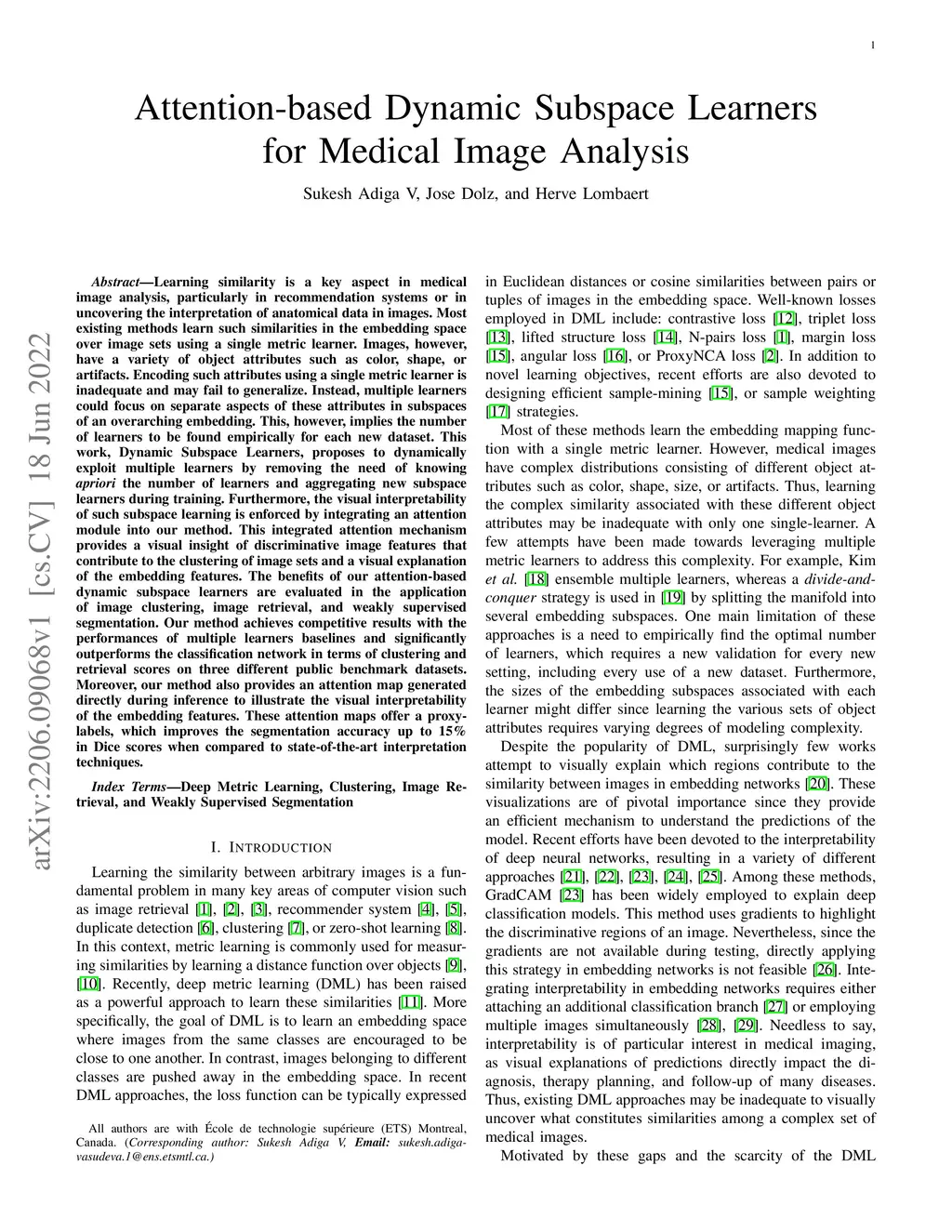 Attention-based Dynamic Subspace Learners for Medical Image Analysis