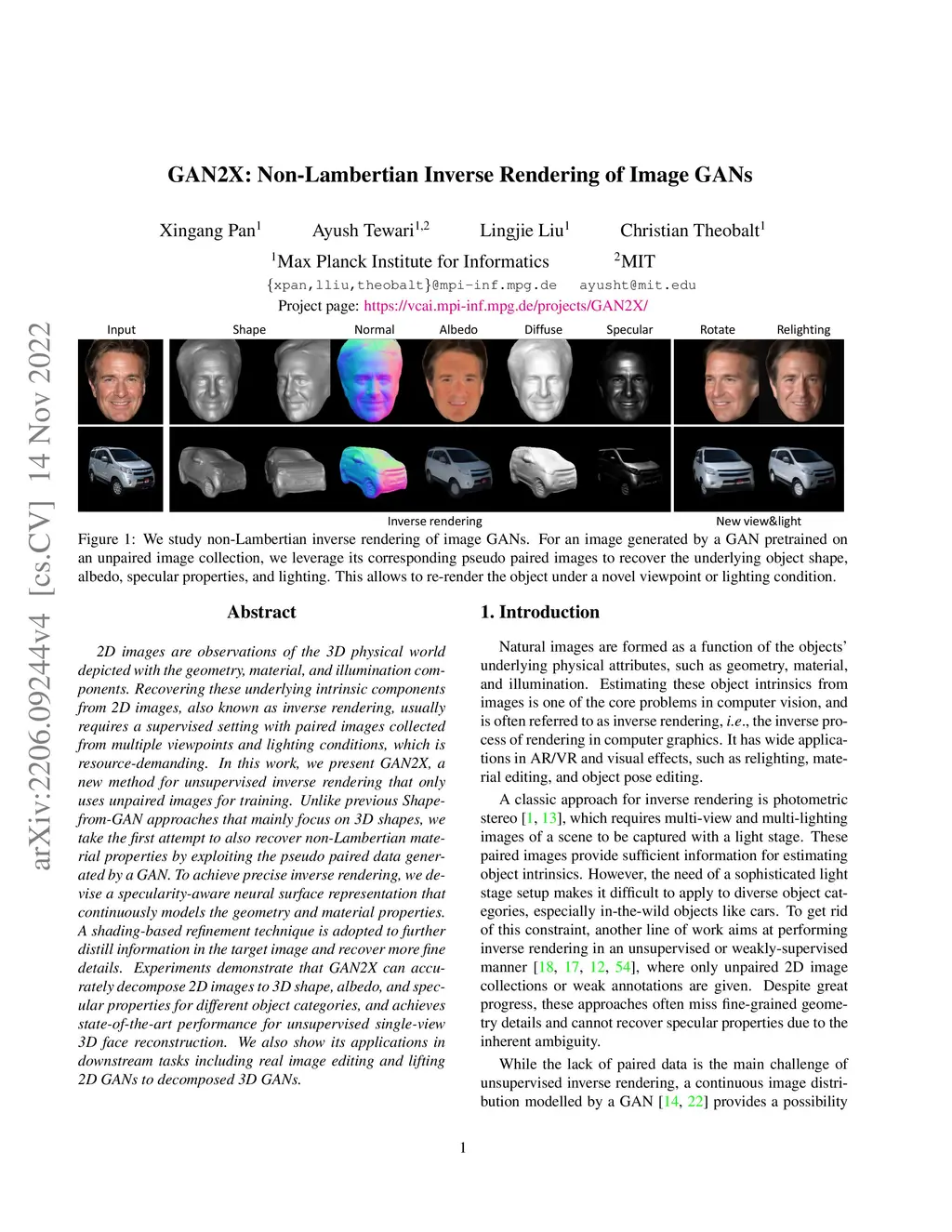 GAN2X: Non-Lambertian Inverse Rendering of Image GANs