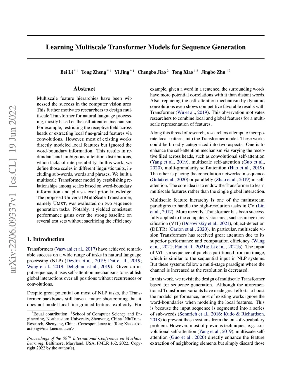 Learning Multiscale Transformer Models for Sequence Generation