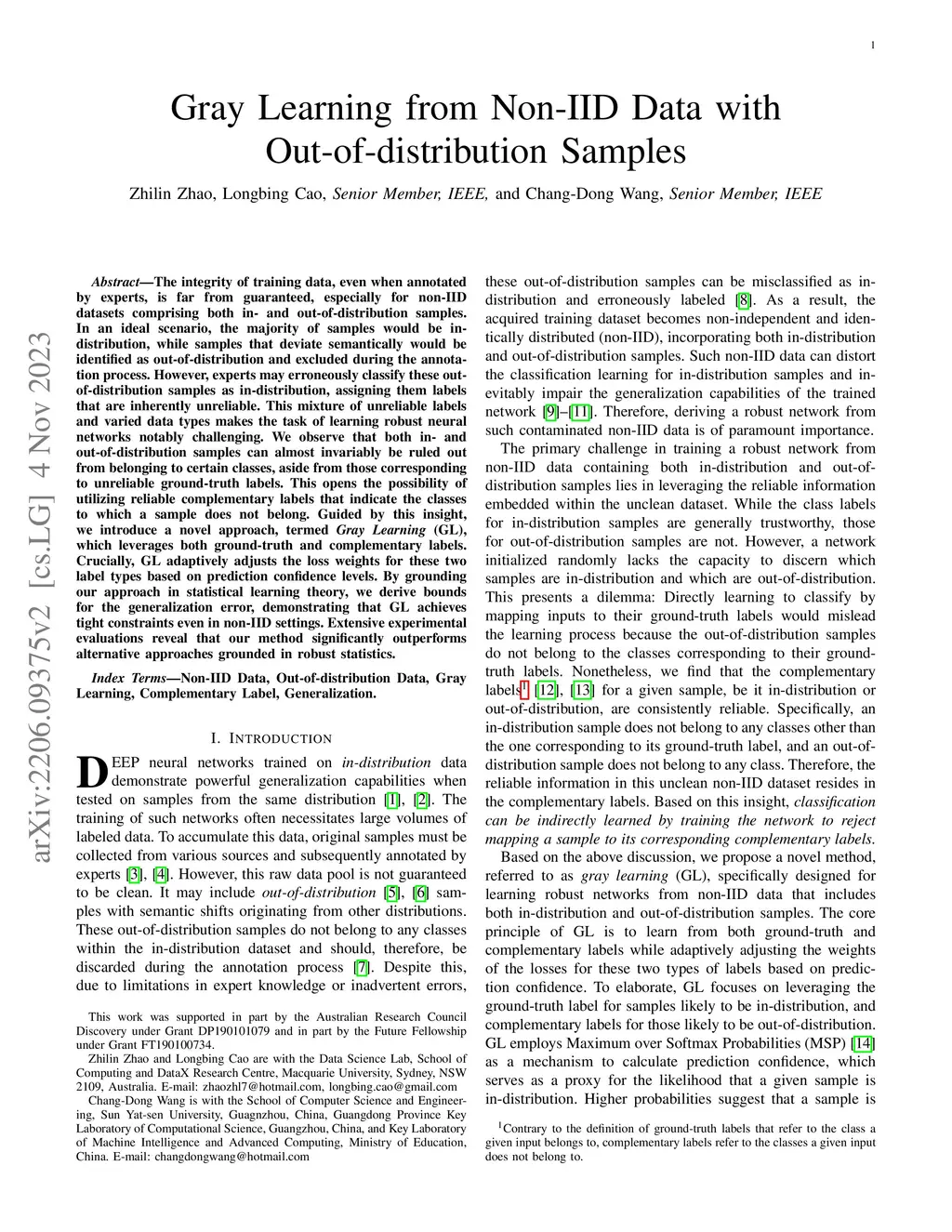 Gray Learning from Non-IID Data with Out-of-distribution Samples