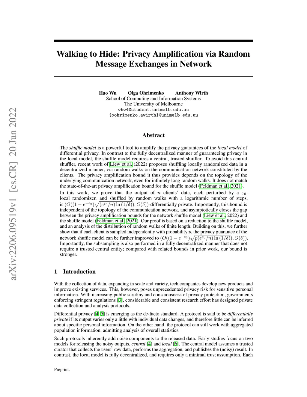 Walking to Hide: Privacy Amplification via Random Message Exchanges in