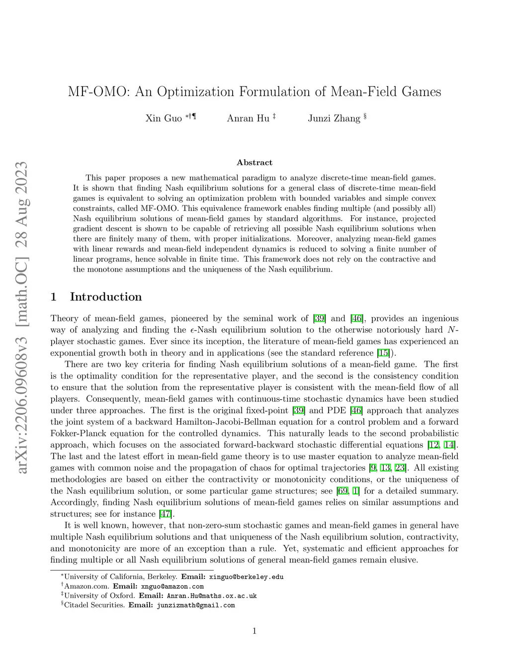 MF-OMO: An Optimization Formulation of Mean-Field Games