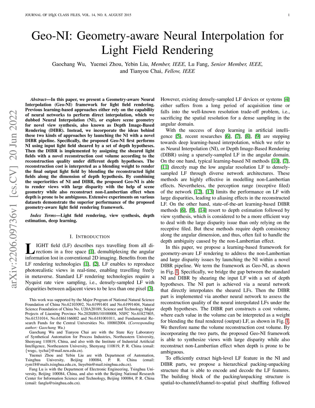 Geo-NI: Geometry-aware Neural Interpolation for Light Field Rendering