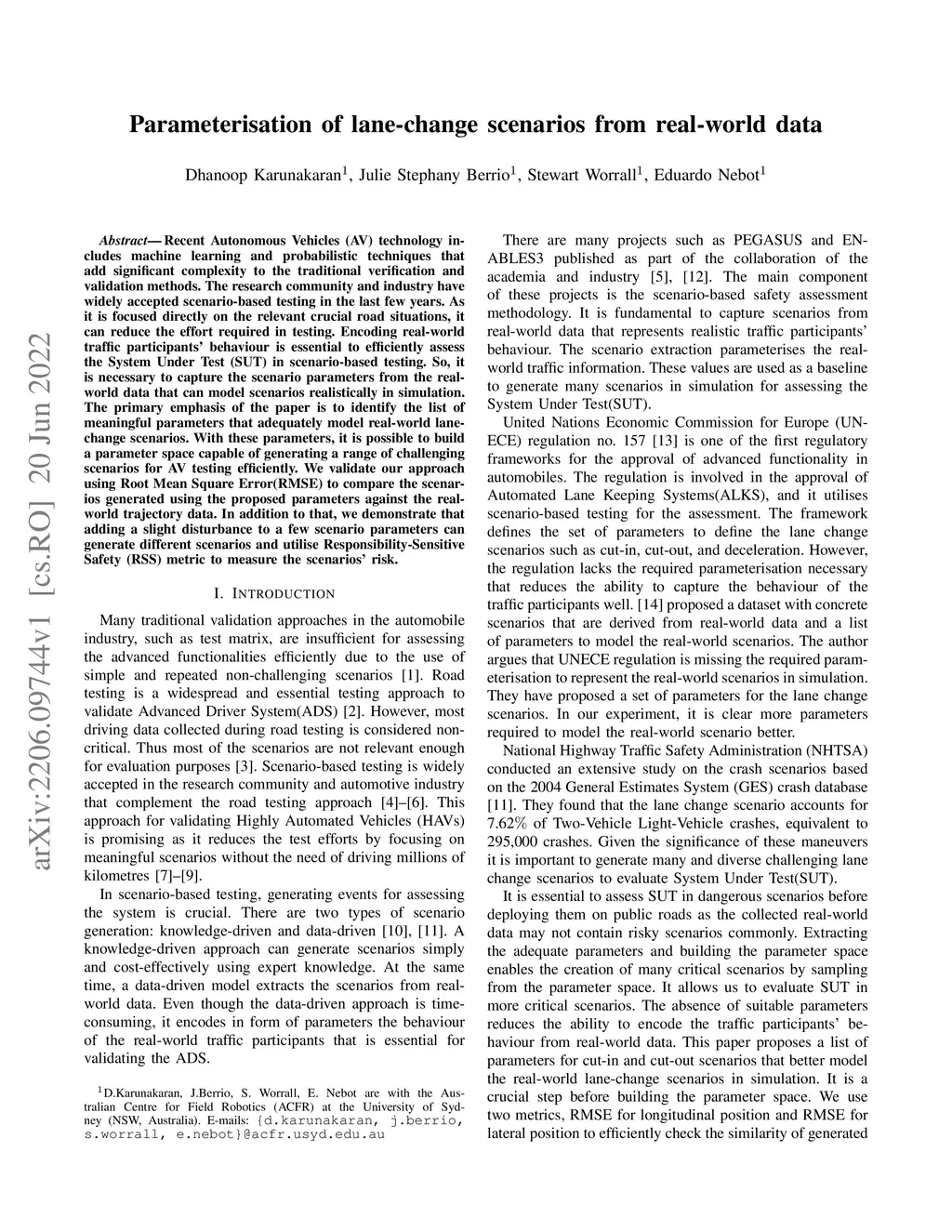 Recent Autonomous Vehicles (AV) technology includes machine learning and probabilistic techniques that add significant complexity to the traditional verification and validation methods. The research community and industry have widely accepted scenario-based testing in the last few years. As it is focused directly on the relevant crucial road situations, it can reduce the effort required in testing. Encoding real-world traffic participants' behaviour is essential to efficiently assess the System Under Test (SUT) in scenario-based testing. So, it is necessary to capture the scenario parameters from the real-world data that can model scenarios realistically in simulation. The primary emphasis of the paper is to identify the list of meaningful parameters that adequately model real-world lane-change scenarios. With these parameters, it is possible to build a parameter space capable of generating a range of challenging scenarios for AV testing efficiently. We validate our approach using Root Mean Square Error(RMSE) to compare the scenarios generated using the proposed parameters against the real-world trajectory data. In addition to that, we demonstrate that adding a slight disturbance to a few scenario parameters can generate different scenarios and utilise Responsibility-Sensitive Safety (RSS) metric to measure the scenarios' risk.