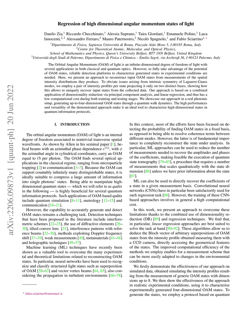 Regression of high dimensional angular momentum states of light