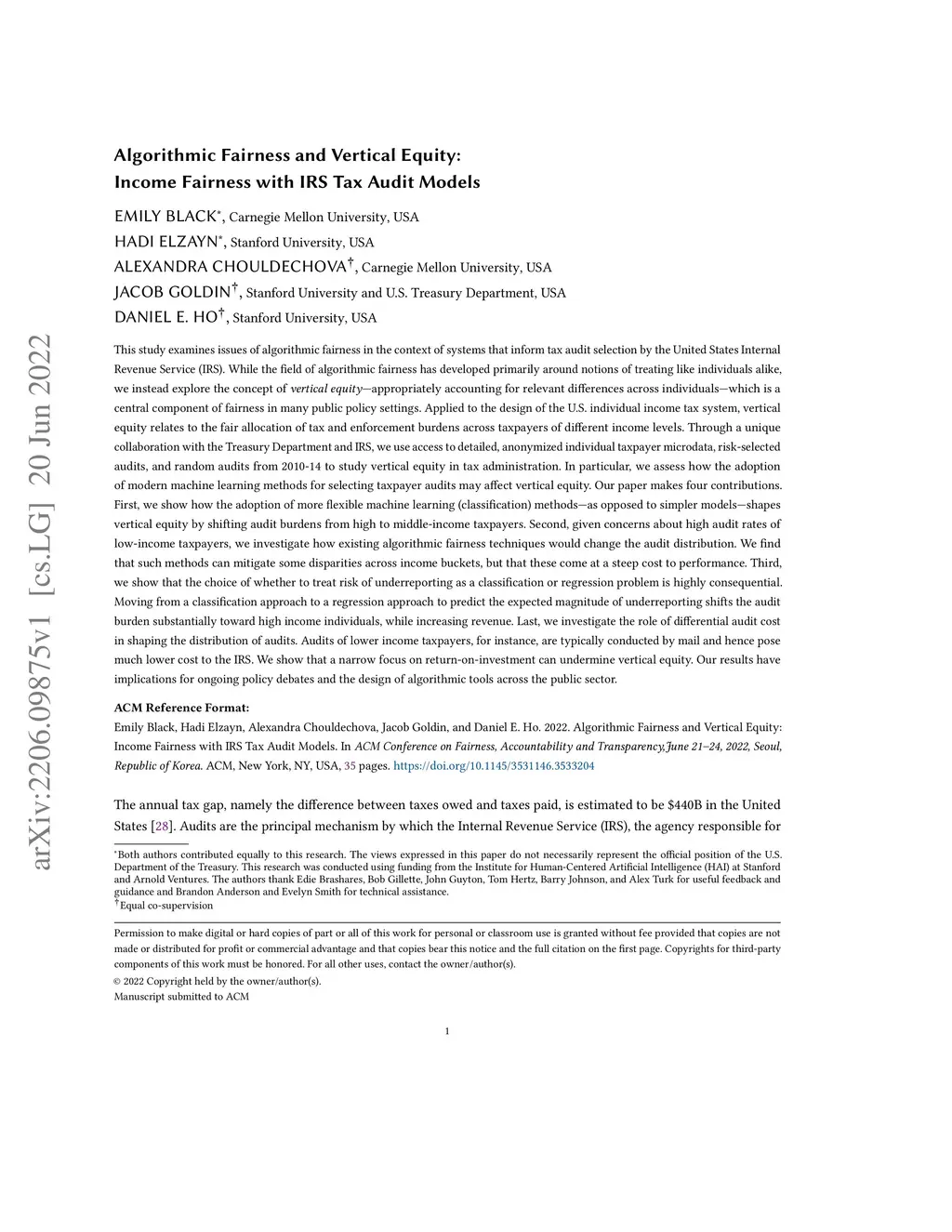 Algorithmic Fairness and Vertical Equity: Income Fairness with IRS Tax