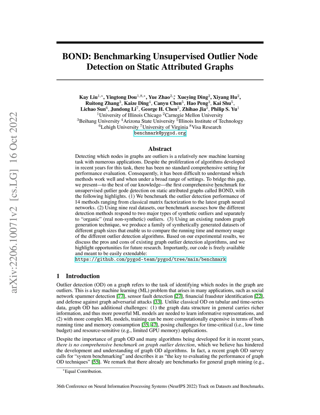 BOND: Benchmarking Unsupervised Outlier Node Detection on Static