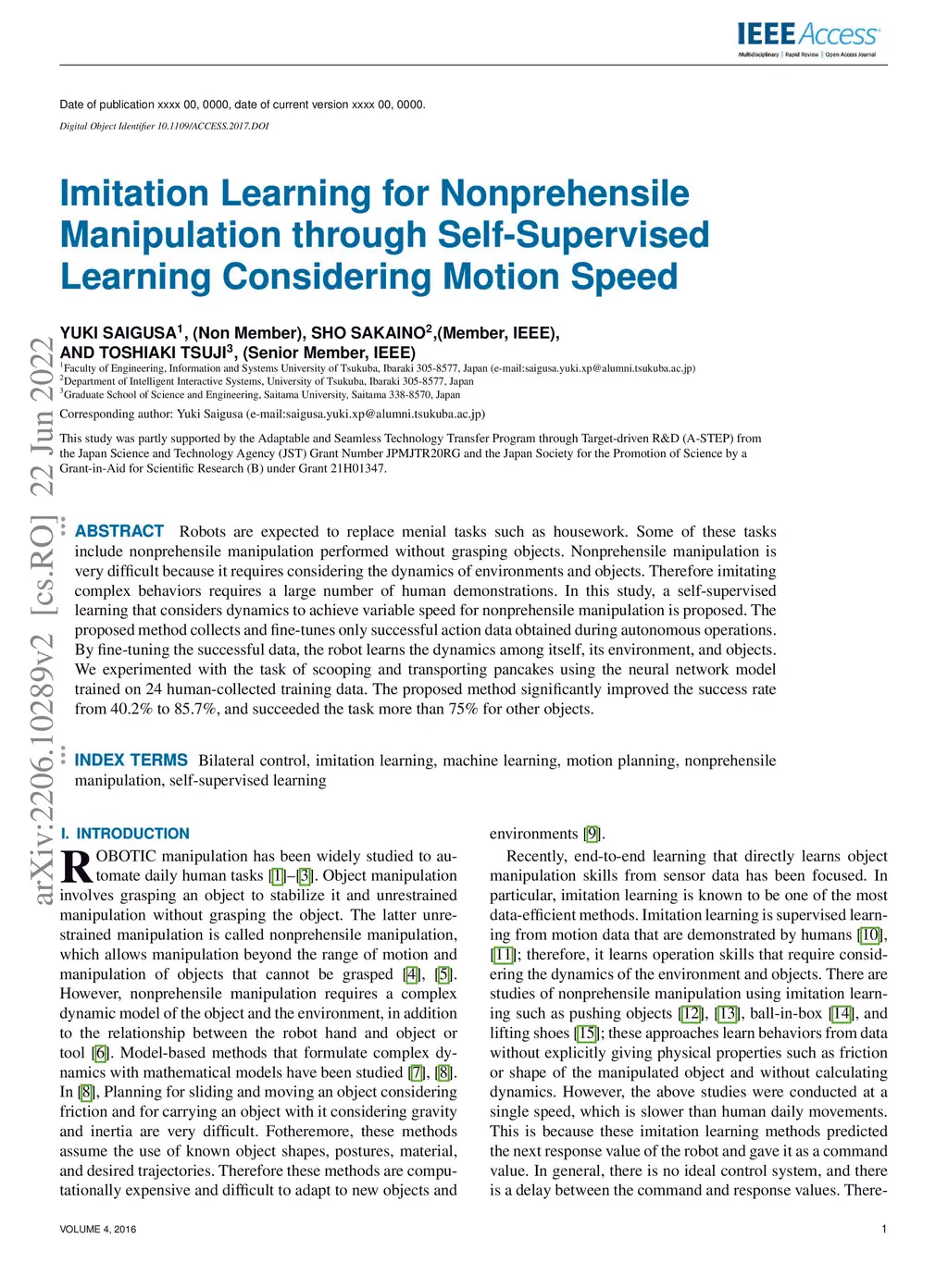 Self-Supervised Learning Considering Motion Speed