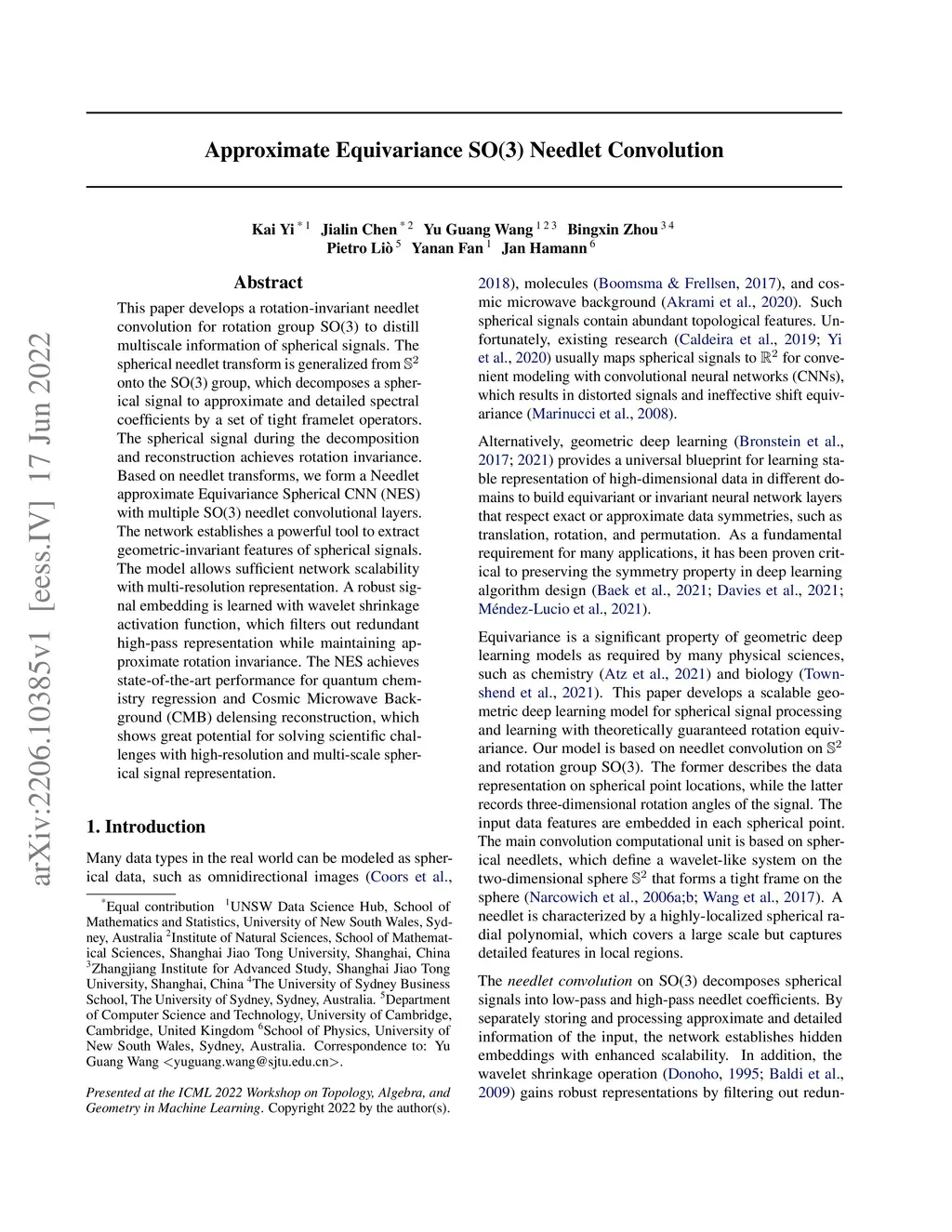This paper develops a rotation-invariant needlet convolution for rotation group SO(3) to distill multiscale information of spherical signals. The spherical needlet transform is generalized from onto the SO(3) group, which decomposes a spherical signal to approximate and detailed spectral coefficients by a set of tight framelet operators. The spherical signal during the decomposition and reconstruction achieves rotation invariance. Based on needlet transforms, we form a Needlet approximate Equivariance Spherical CNN (NES) with multiple SO(3) needlet convolutional layers. The network establishes a powerful tool to extract geometric-invariant features of spherical signals. The model allows sufficient network scalability with multi-resolution representation. A robust signal embedding is learned with wavelet shrinkage activation function, which filters out redundant high-pass representation while maintaining approximate rotation invariance. The NES achieves state-of-the-art performance for quantum chemistry regression and Cosmic Microwave Background (CMB) delensing reconstruction, which shows great potential for solving scientific challenges with high-resolution and multi-scale spherical signal representation.