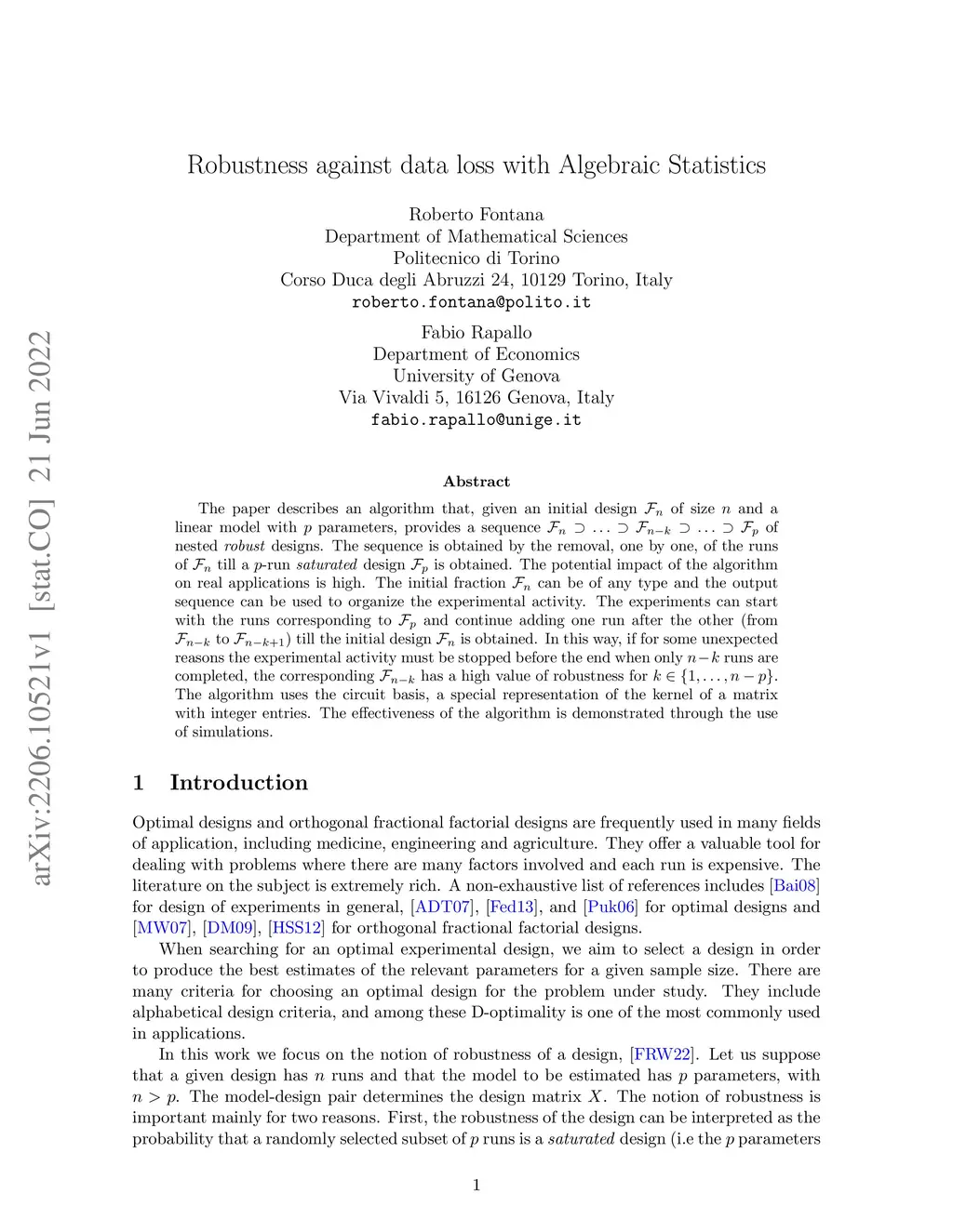 The paper describes an algorithm that, given an initial design of size and a linear model with parameters, provides a sequence of nested \emph{robust} designs. The sequence is obtained by the removal, one by one, of the runs of till a -run \emph{saturated} design is obtained. The potential impact of the algorithm on real applications is high. The initial fraction can be of any type and the output sequence can be used to organize the experimental activity. The experiments can start with the runs corresponding to and continue adding one run after the other (from to ) till the initial design is obtained. In this way, if for some unexpected reasons the experimental activity must be stopped before the end when only runs are completed, the corresponding has a high value of robustness for . The algorithm uses the circuit basis, a special representation of the kernel of a matrix with integer entries. The effectiveness of the algorithm is demonstrated through the use of simulations.