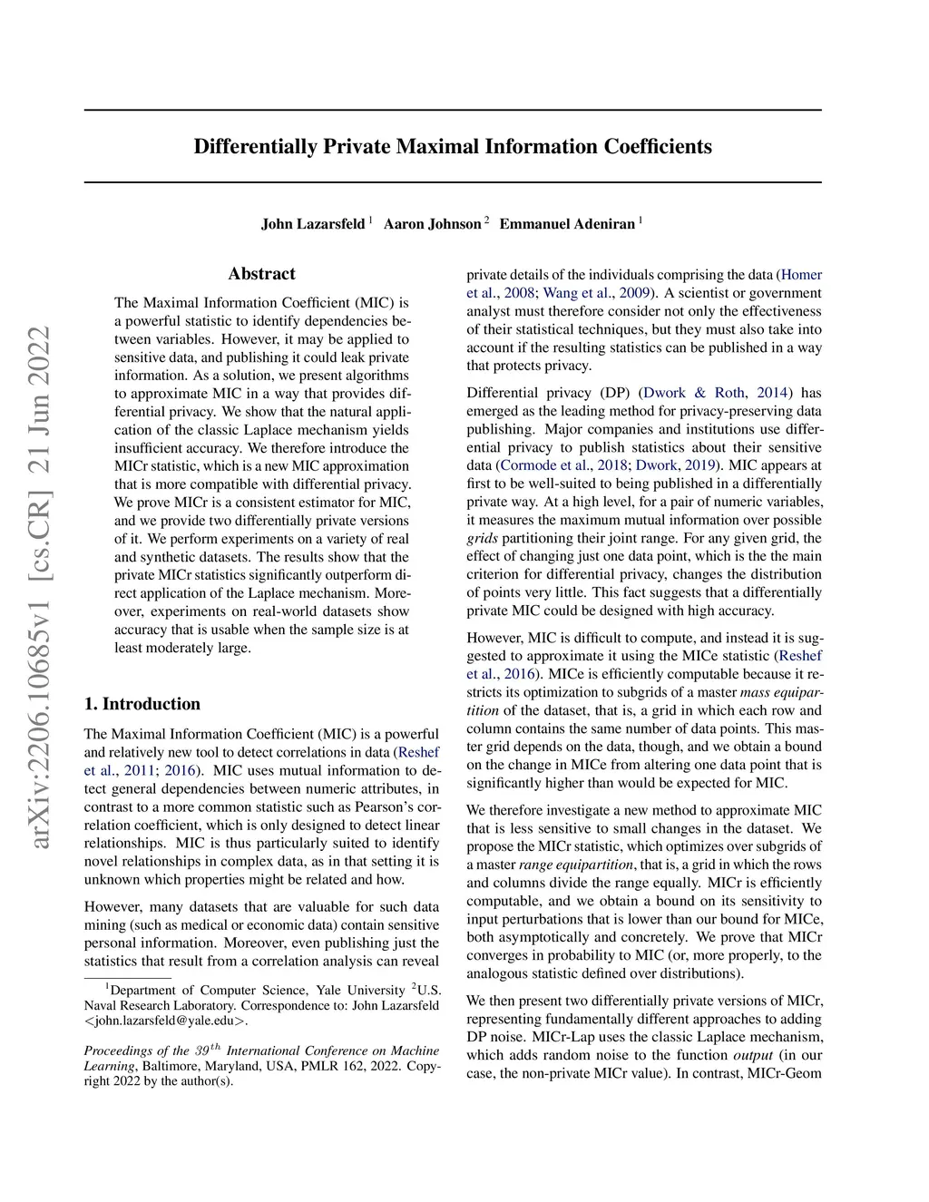 The Maximal Information Coefficient (MIC) is a powerful statistic to identify dependencies between variables. However, it may be applied to sensitive data, and publishing it could leak private information. As a solution, we present algorithms to approximate MIC in a way that provides differential privacy. We show that the natural application of the classic Laplace mechanism yields insufficient accuracy. We therefore introduce the MICr statistic, which is a new MIC approximation that is more compatible with differential privacy. We prove MICr is a consistent estimator for MIC, and we provide two differentially private versions of it. We perform experiments on a variety of real and synthetic datasets. The results show that the private MICr statistics significantly outperform direct application of the Laplace mechanism. Moreover, experiments on real-world datasets show accuracy that is usable when the sample size is at least moderately large.