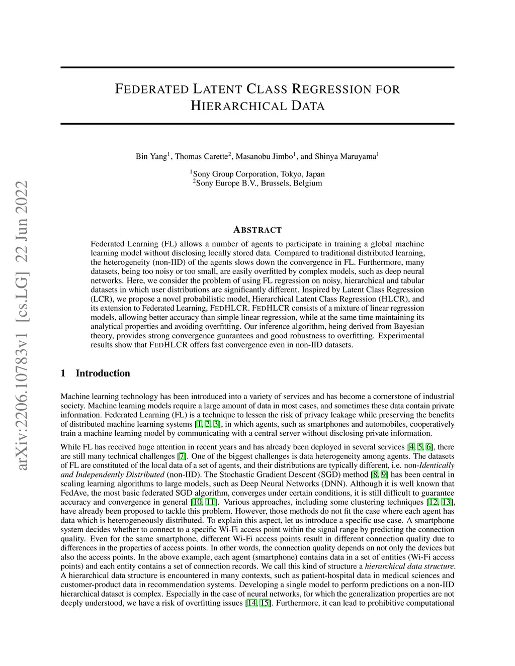 Federated Learning (FL) allows a number of agents to participate in training a global machine learning model without disclosing locally stored data. Compared to traditional distributed learning, the heterogeneity (non-IID) of the agents slows down the convergence in FL. Furthermore, many datasets, being too noisy or too small, are easily overfitted by complex models, such as deep neural networks. Here, we consider the problem of using FL regression on noisy, hierarchical and tabular datasets in which user distributions are significantly different. Inspired by Latent Class Regression (LCR), we propose a novel probabilistic model, Hierarchical Latent Class Regression (HLCR), and its extension to Federated Learning, FEDHLCR. FEDHLCR consists of a mixture of linear regression models, allowing better accuracy than simple linear regression, while at the same time maintaining its analytical properties and avoiding overfitting. Our inference algorithm, being derived from Bayesian theory, provides strong convergence guarantees and good robustness to overfitting. Experimental results show that FEDHLCR offers fast convergence even in non-IID datasets.
