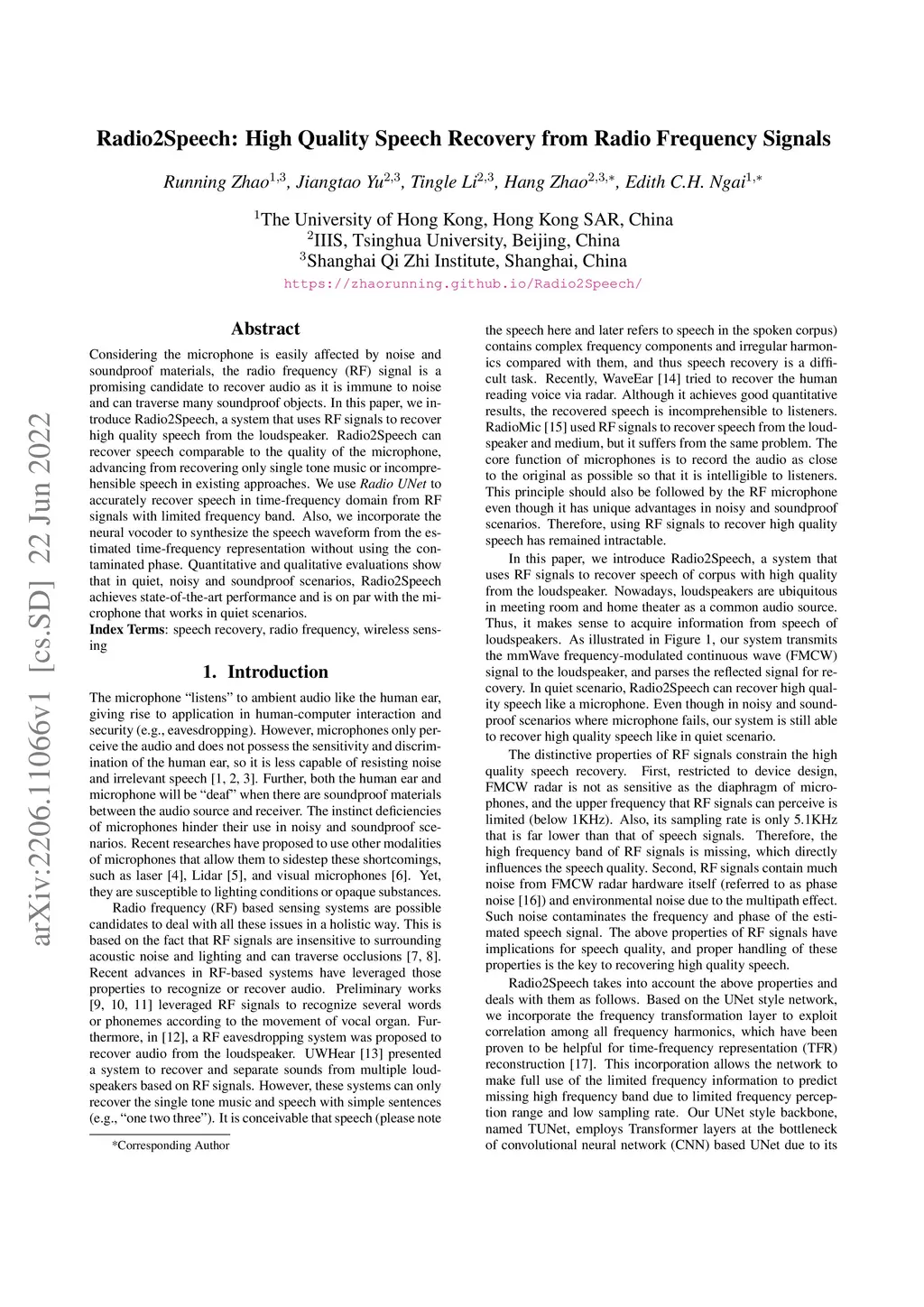 Radio2Speech: High Quality Speech Recovery from Radio Frequency Signals