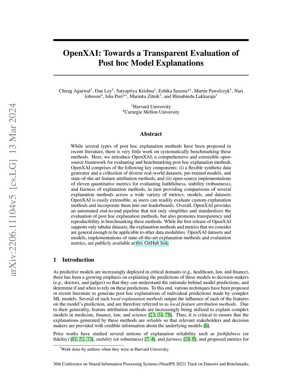 OpenXAI: Towards a Transparent Evaluation of Model Explanations