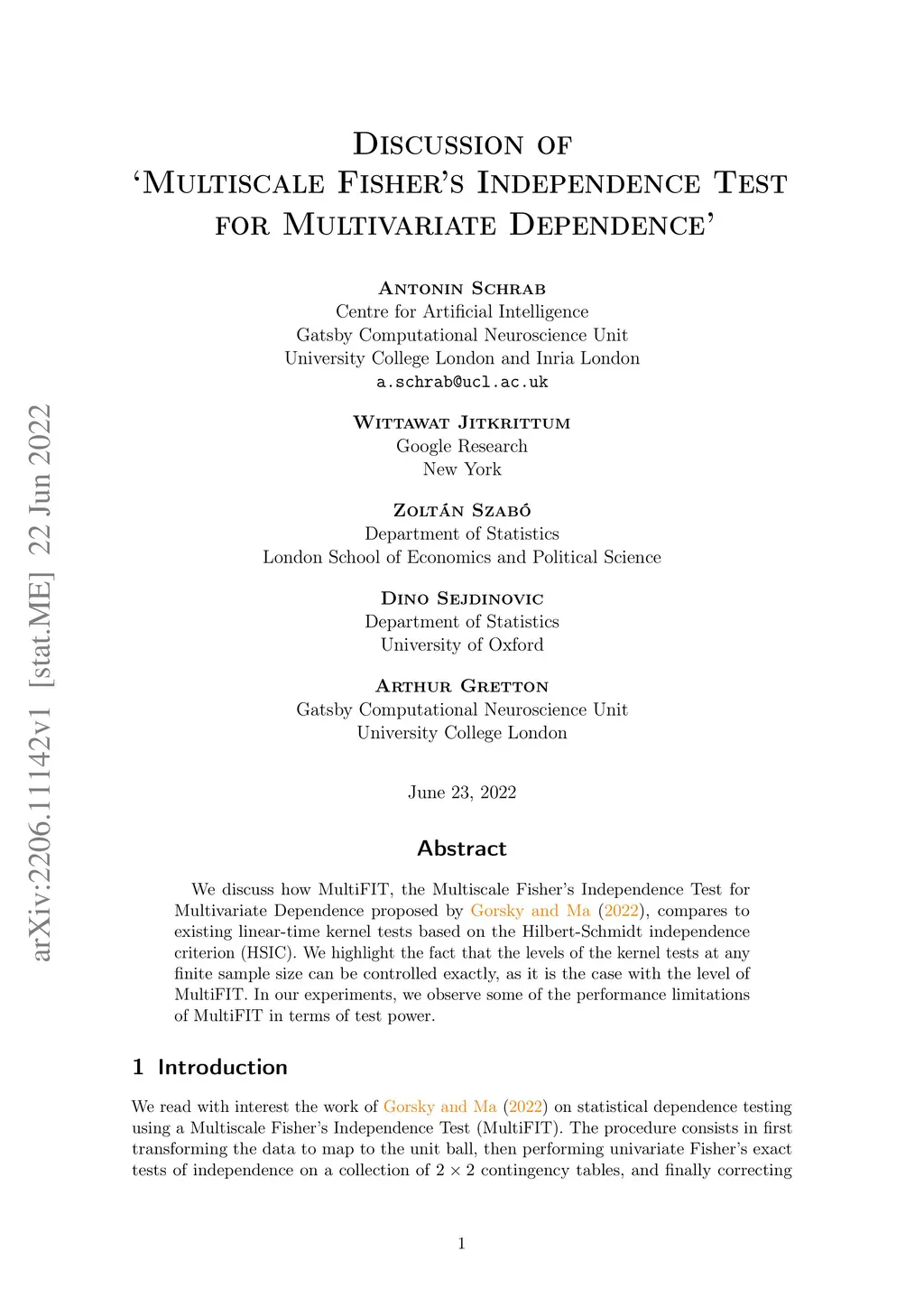 We discuss how MultiFIT, the Multiscale Fisher's Independence Test for Multivariate Dependence proposed by Gorsky and Ma (2022), compares to existing linear-time kernel tests based on the Hilbert-Schmidt independence criterion (HSIC). We highlight the fact that the levels of the kernel tests at any finite sample size can be controlled exactly, as it is the case with the level of MultiFIT. In our experiments, we observe some of the performance limitations of MultiFIT in terms of test power.