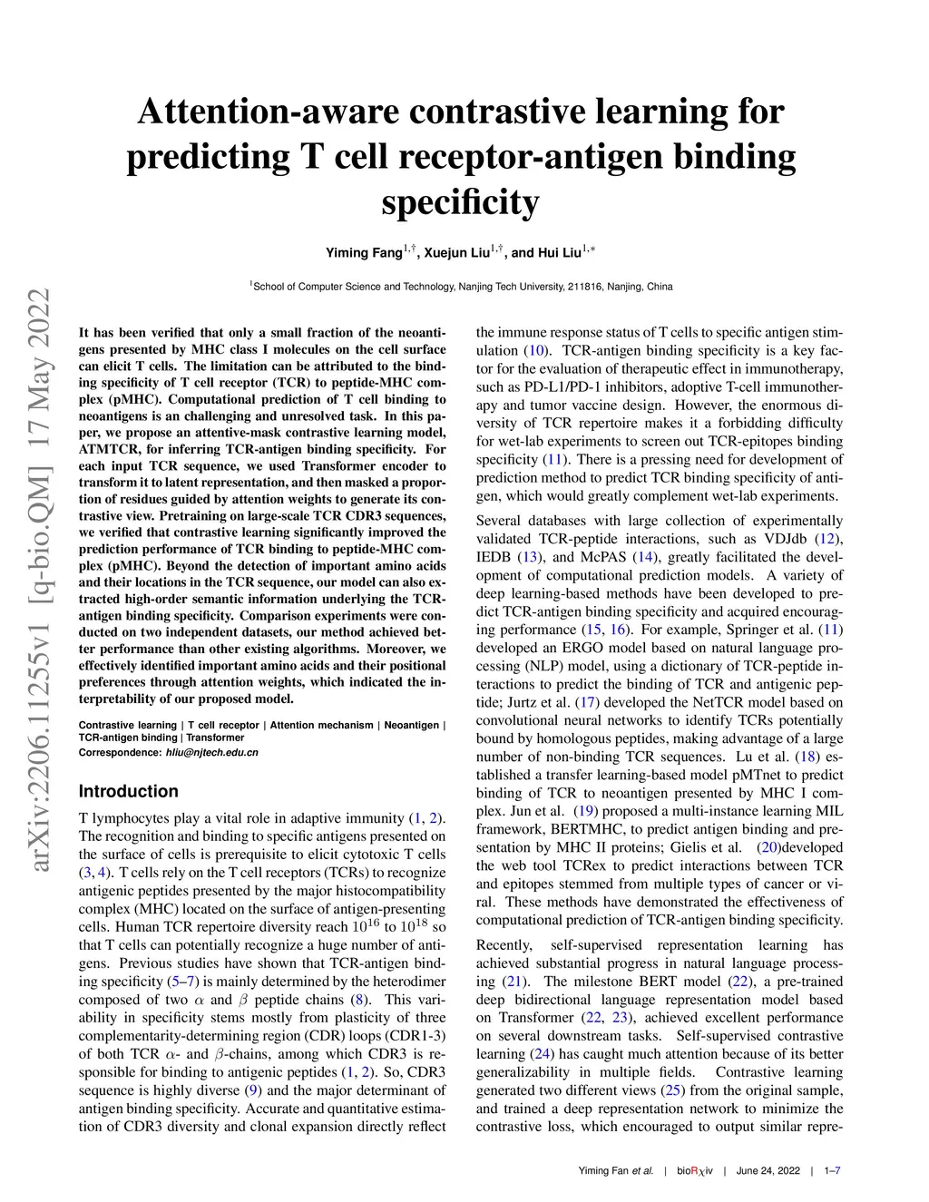 Attention-aware contrastive learning for predicting T cell