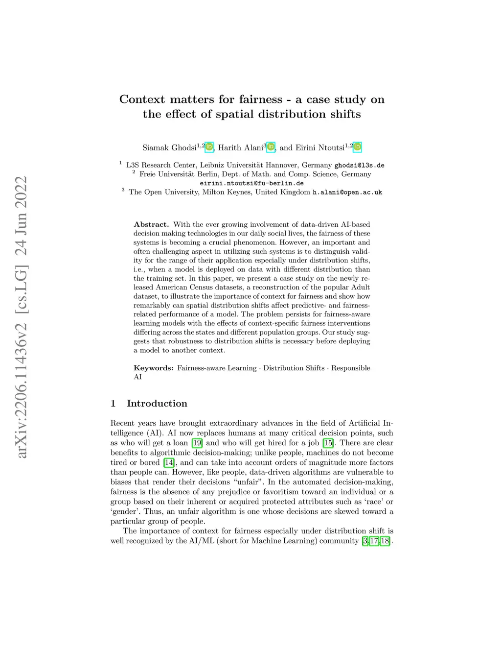 With the ever growing involvement of data-driven AI-based decision making technologies in our daily social lives, the fairness of these systems is becoming a crucial phenomenon. However, an important and often challenging aspect in utilizing such systems is to distinguish validity for the range of their application especially under distribution shifts, i.e., when a model is deployed on data with different distribution than the training set. In this paper, we present a case study on the newly released American Census datasets, a reconstruction of the popular Adult dataset, to illustrate the importance of context for fairness and show how remarkably can spatial distribution shifts affect predictive- and fairness-related performance of a model. The problem persists for fairness-aware learning models with the effects of context-specific fairness interventions differing across the states and different population groups. Our study suggests that robustness to distribution shifts is necessary before deploying a model to another context.