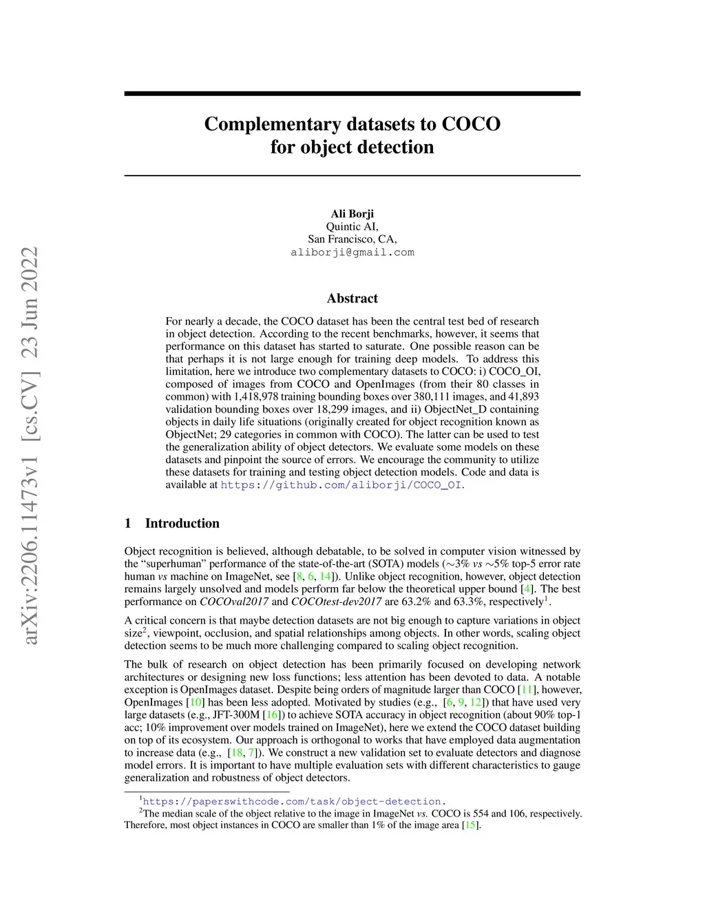 Complementary datasets to COCO for object detection