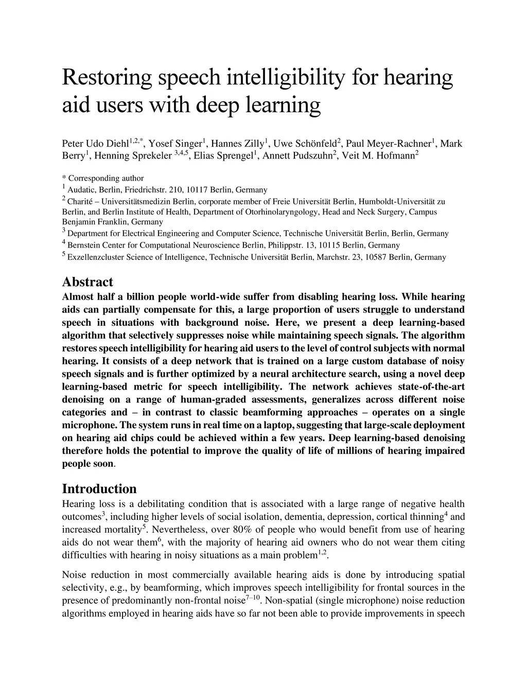 Restoring speech intelligibility for hearing aid users with deep