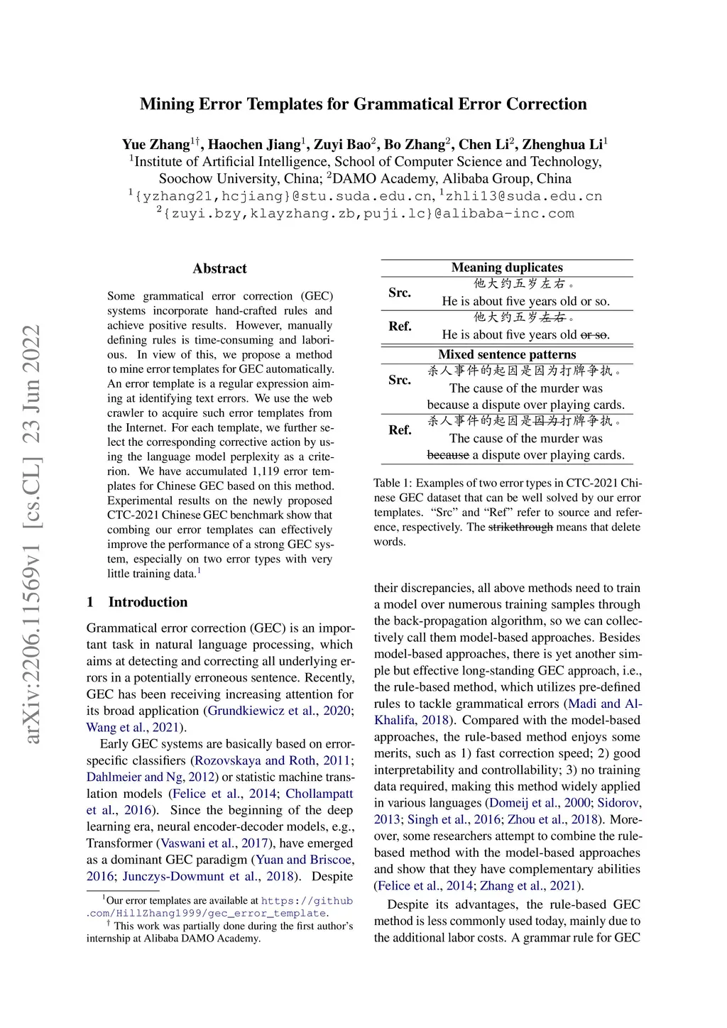 Some grammatical error correction (GEC) systems incorporate hand-crafted rules and achieve positive results. However, manually defining rules is time-consuming and laborious. In view of this, we propose a method to mine error templates for GEC automatically. An error template is a regular expression aiming at identifying text errors. We use the web crawler to acquire such error templates from the Internet. For each template, we further select the corresponding corrective action by using the language model perplexity as a criterion. We have accumulated 1,119 error templates for Chinese GEC based on this method. Experimental results on the newly proposed CTC-2021 Chinese GEC benchmark show that combing our error templates can effectively improve the performance of a strong GEC system, especially on two error types with very little training data. Our error templates are available at \url{https://github.com/HillZhang1999/gec_error_template}.