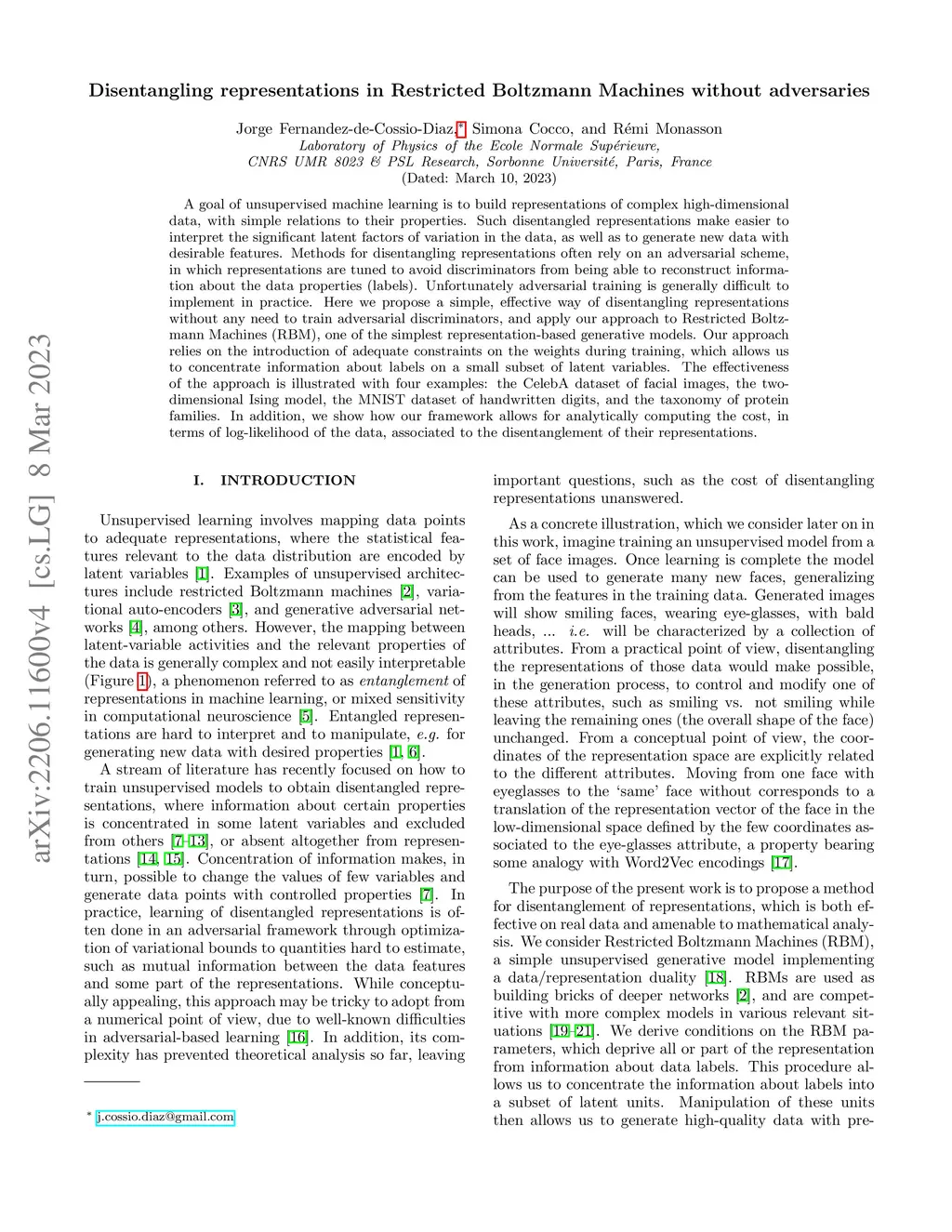 A goal of unsupervised machine learning is to build representations of complex high-dimensional data, with simple relations to their properties. Such disentangled representations make easier to interpret the significant latent factors of variation in the data, as well as to generate new data with desirable features. Methods for disentangling representations often rely on an adversarial scheme, in which representations are tuned to avoid discriminators from being able to reconstruct information about the data properties (labels). Unfortunately adversarial training is generally difficult to implement in practice. Here we propose a simple, effective way of disentangling representations without any need to train adversarial discriminators, and apply our approach to Restricted Boltzmann Machines (RBM), one of the simplest representation-based generative models. Our approach relies on the introduction of adequate constraints on the weights during training, which allows us to concentrate information about labels on a small subset of latent variables. The effectiveness of the approach is illustrated with four examples: the CelebA dataset of facial images, the two-dimensional Ising model, the MNIST dataset of handwritten digits, and the taxonomy of protein families. In addition, we show how our framework allows for analytically computing the cost, in terms of log-likelihood of the data, associated to the disentanglement of their representations.