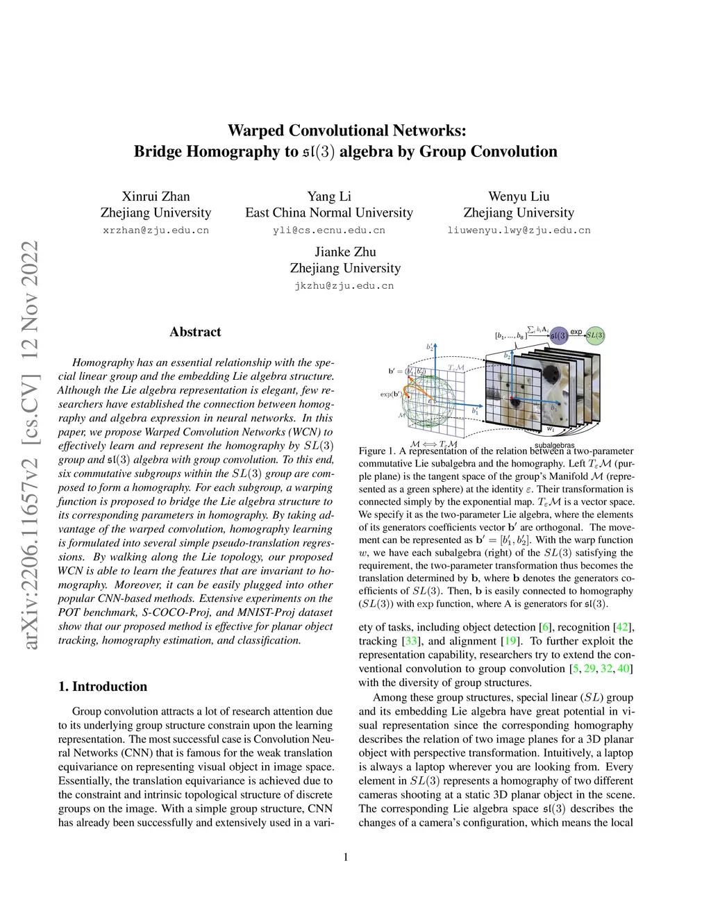 Warped Convolutional Networks: Bridge Homography to sl(3) algebra by