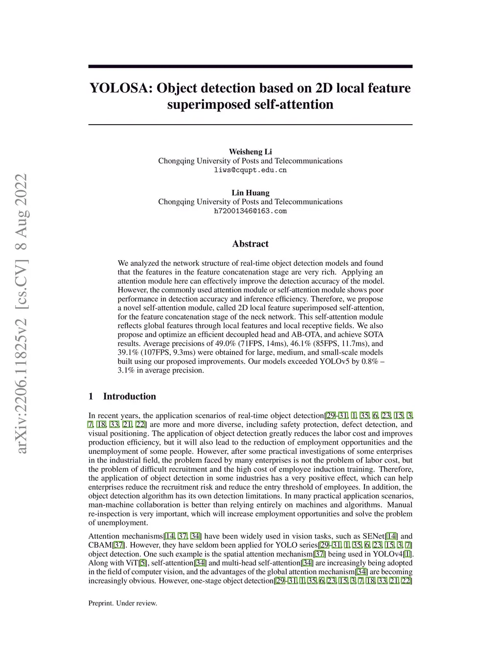 YOLOSA: Object detection based on 2D local feature superimposed