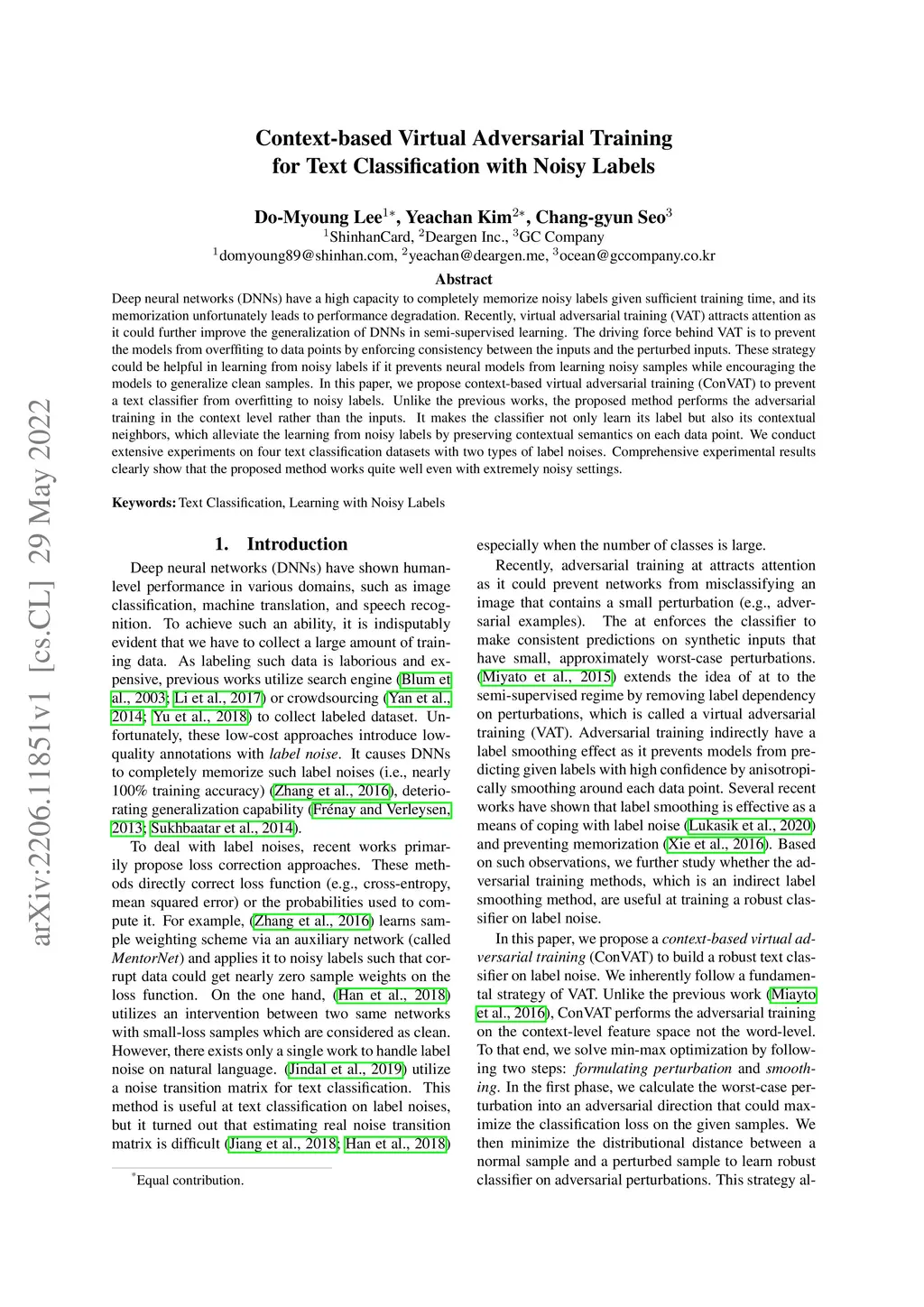 Context-based Virtual Adversarial Training for Text Classification with