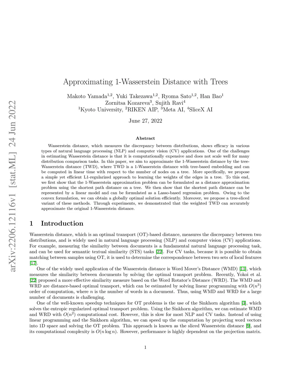 Wasserstein distance, which measures the discrepancy between distributions, shows efficacy in various types of natural language processing (NLP) and computer vision (CV) applications. One of the challenges in estimating Wasserstein distance is that it is computationally expensive and does not scale well for many distribution comparison tasks. In this paper, we aim to approximate the 1-Wasserstein distance by the tree-Wasserstein distance (TWD), where TWD is a 1-Wasserstein distance with tree-based embedding and can be computed in linear time with respect to the number of nodes on a tree. More specifically, we propose a simple yet efficient L1-regularized approach to learning the weights of the edges in a tree. To this end, we first show that the 1-Wasserstein approximation problem can be formulated as a distance approximation problem using the shortest path distance on a tree. We then show that the shortest path distance can be represented by a linear model and can be formulated as a Lasso-based regression problem. Owing to the convex formulation, we can obtain a globally optimal solution efficiently. Moreover, we propose a tree-sliced variant of these methods. Through experiments, we demonstrated that the weighted TWD can accurately approximate the original 1-Wasserstein distance.