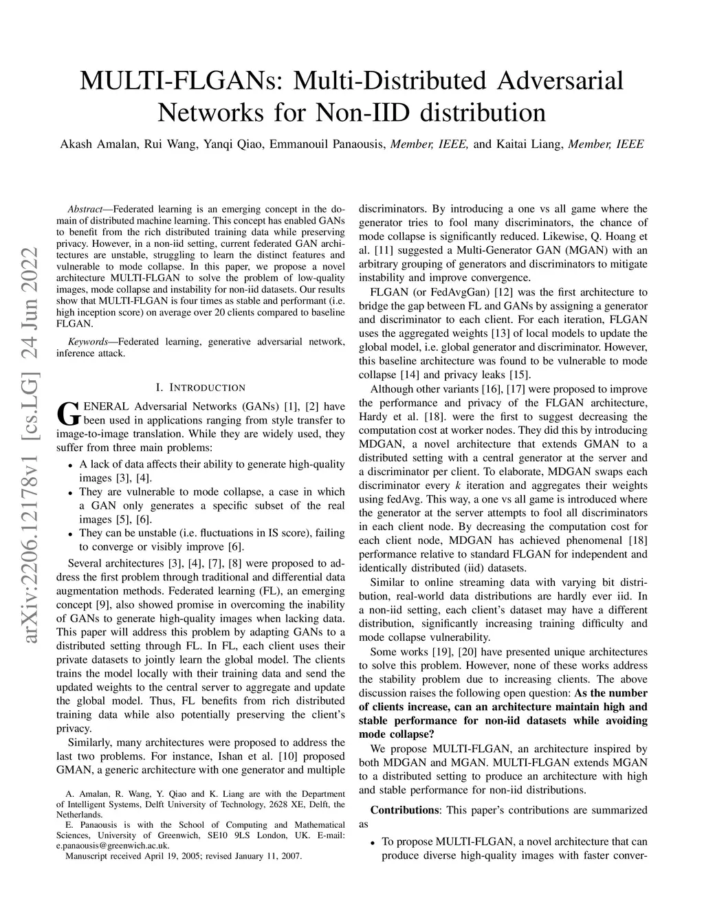 MULTI-FLGANs: Multi-Distributed Adversarial Networks for Non-IID