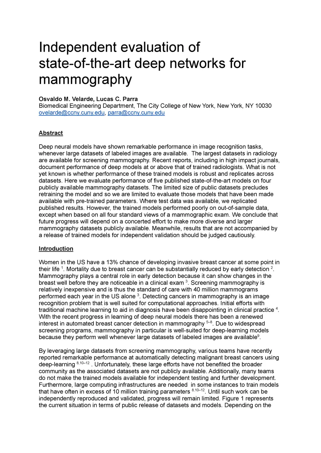 Independent evaluation of state-of-the-art deep networks for mammography