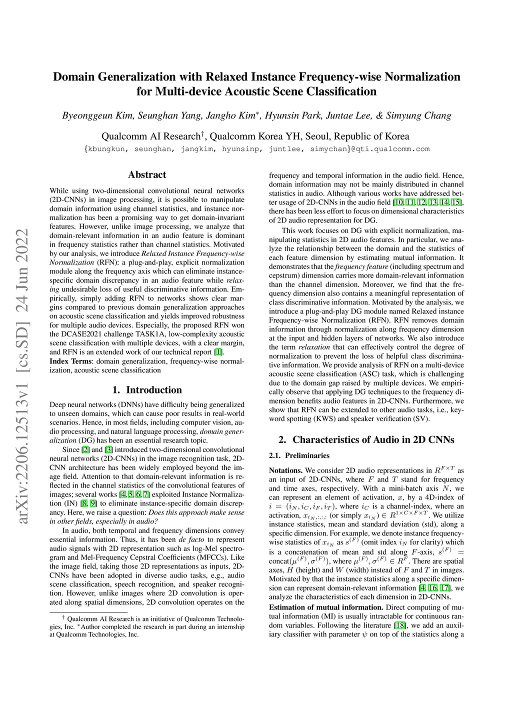While using two-dimensional convolutional neural networks (2D-CNNs) in image processing, it is possible to manipulate domain information using channel statistics, and instance normalization has been a promising way to get domain-invariant features. However, unlike image processing, we analyze that domain-relevant information in an audio feature is dominant in frequency statistics rather than channel statistics. Motivated by our analysis, we introduce Relaxed Instance Frequency-wise Normalization (RFN): a plug-and-play, explicit normalization module along the frequency axis which can eliminate instance-specific domain discrepancy in an audio feature while relaxing undesirable loss of useful discriminative information. Empirically, simply adding RFN to networks shows clear margins compared to previous domain generalization approaches on acoustic scene classification and yields improved robustness for multiple audio devices. Especially, the proposed RFN won the DCASE2021 challenge TASK1A, low-complexity acoustic scene classification with multiple devices, with a clear margin, and RFN is an extended work of our technical report.
