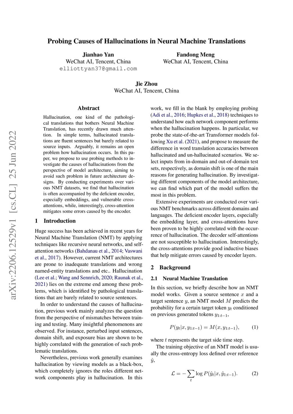 Hallucination, one kind of pathological translations that bothers Neural Machine Translation, has recently drawn much attention. In simple terms, hallucinated translations are fluent sentences but barely related to source inputs. Arguably, it remains an open problem how hallucination occurs. In this paper, we propose to use probing methods to investigate the causes of hallucinations from the perspective of model architecture, aiming to avoid such problems in future architecture designs. By conducting experiments over various NMT datasets, we find that hallucination is often accompanied by the deficient encoder, especially embeddings, and vulnerable cross-attentions, while, interestingly, cross-attention mitigates some errors caused by the encoder.