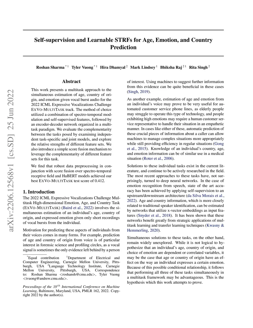 Self-supervision and Learnable STRFs for Age, Emotion, and Country