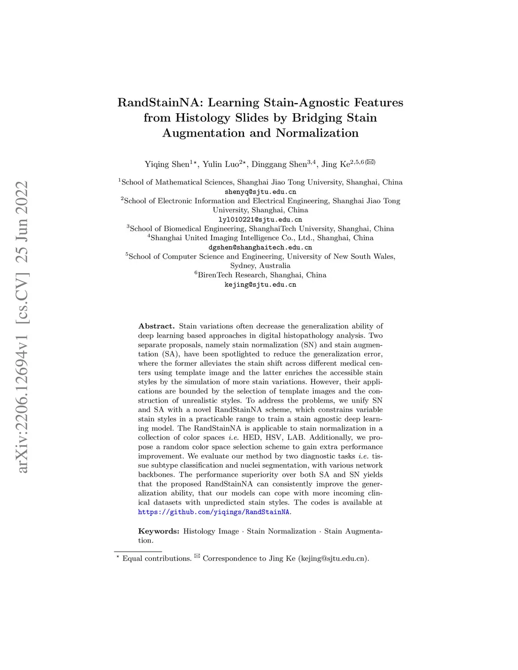 RandStainNA: Learning Stain-Agnostic Features from Histology Slides by