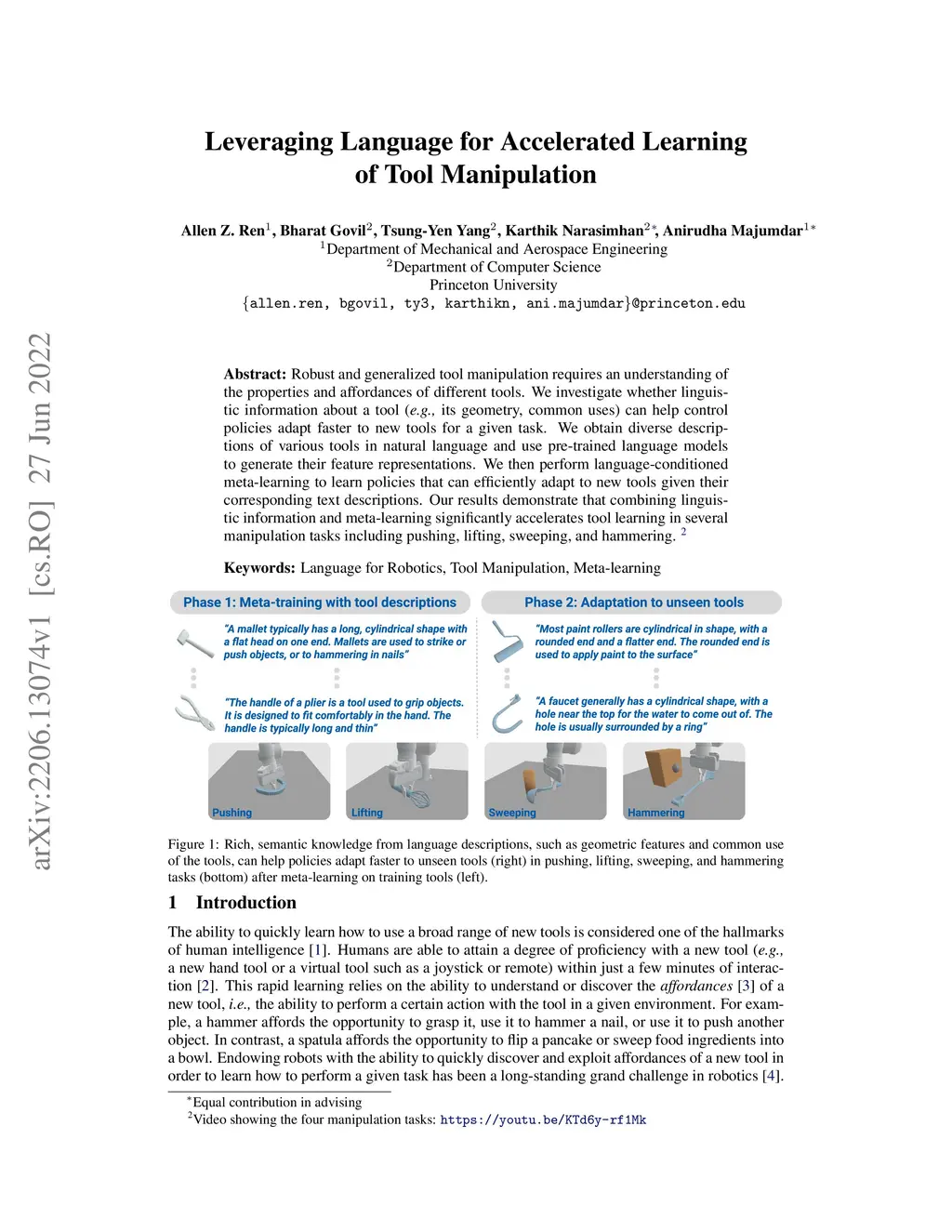 Leveraging Language for Accelerated Learning of Tool Manipulation