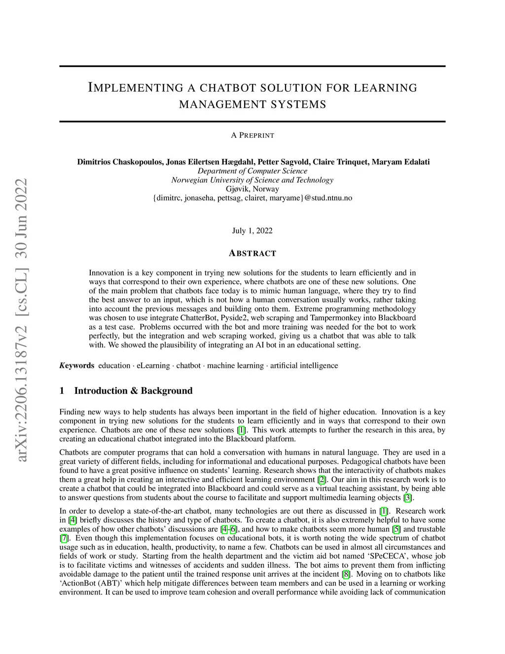Implementing a Chatbot Solution for Learning Management System