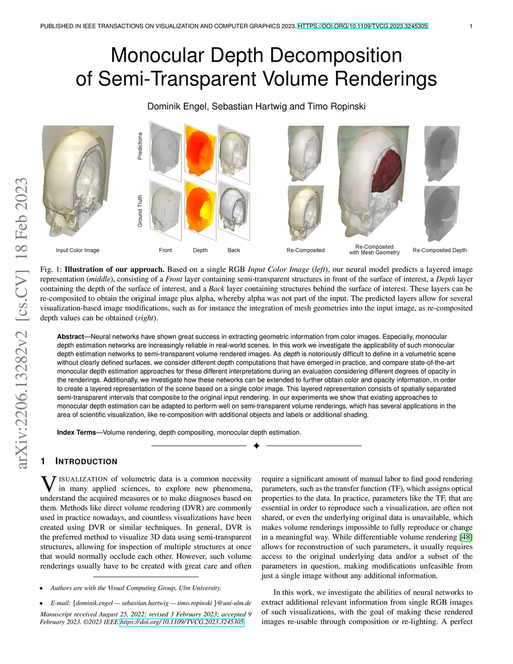 Monocular Depth Decomposition of Semi-Transparent Volume Renderings