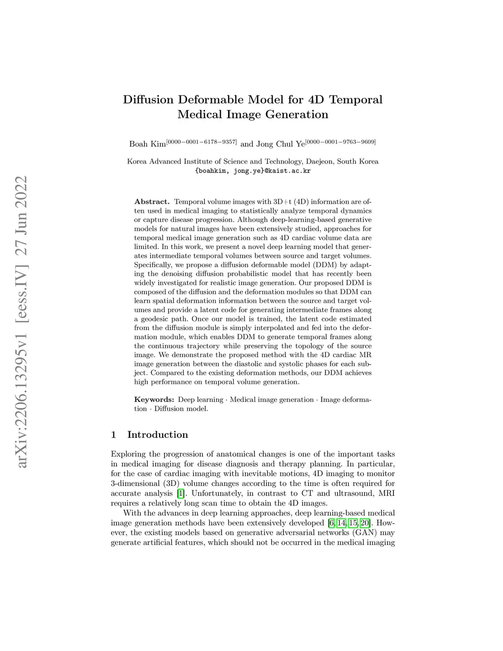 Diffusion Deformable Model for 4D Temporal Medical Image Generation