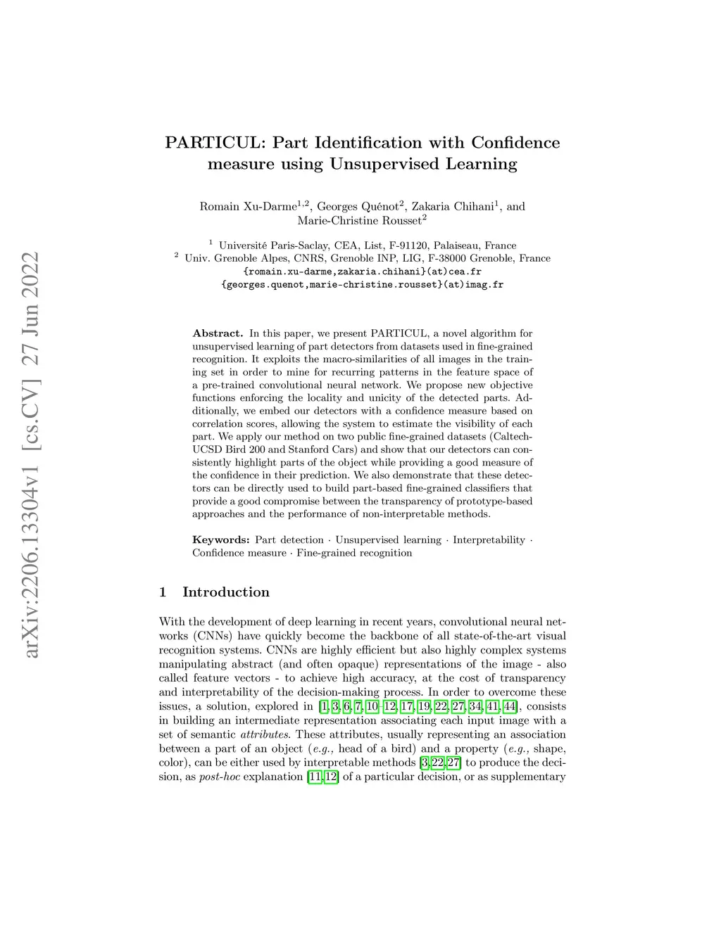 PARTICUL: Part Identification with Confidence measure using Unsupervised