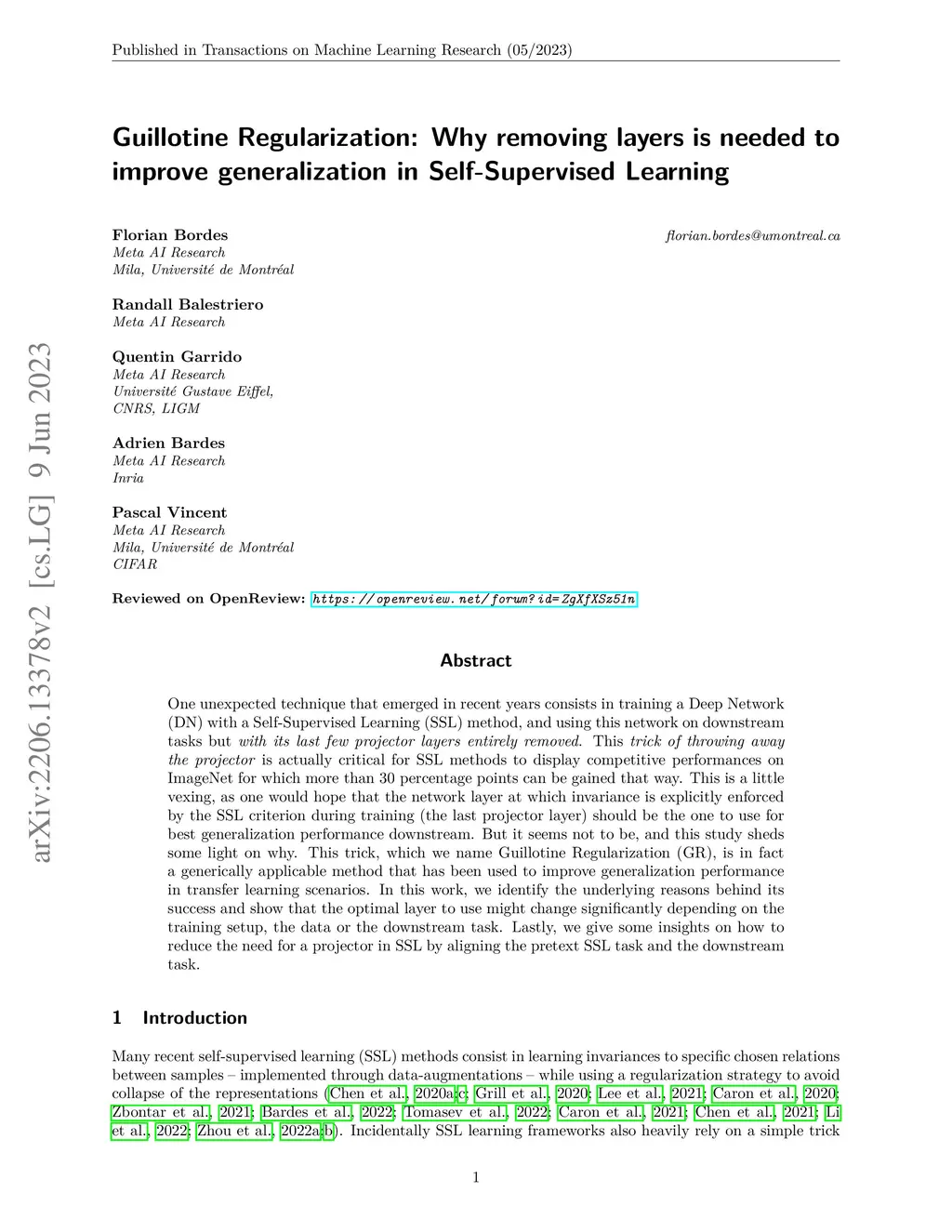One unexpected technique that emerged in recent years consists in training a Deep Network (DN) with a Self-Supervised Learning (SSL) method, and using this network on downstream tasks but with its last few projector layers entirely removed. This trick of throwing away the projector is actually critical for SSL methods to display competitive performances on ImageNet for which more than 30 percentage points can be gained that way. This is a little vexing, as one would hope that the network layer at which invariance is explicitly enforced by the SSL criterion during training (the last projector layer) should be the one to use for best generalization performance downstream. But it seems not to be, and this study sheds some light on why. This trick, which we name Guillotine Regularization (GR), is in fact a generically applicable method that has been used to improve generalization performance in transfer learning scenarios. In this work, we identify the underlying reasons behind its success and show that the optimal layer to use might change significantly depending on the training setup, the data or the downstream task. Lastly, we give some insights on how to reduce the need for a projector in SSL by aligning the pretext SSL task and the downstream task.