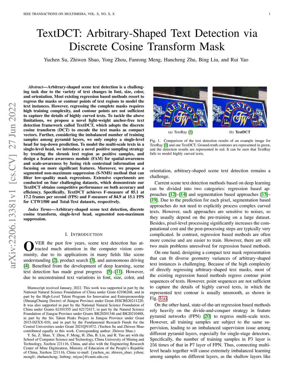 TextDCT: Arbitrary-Shaped Text Detection via Discrete Cosine Transform
