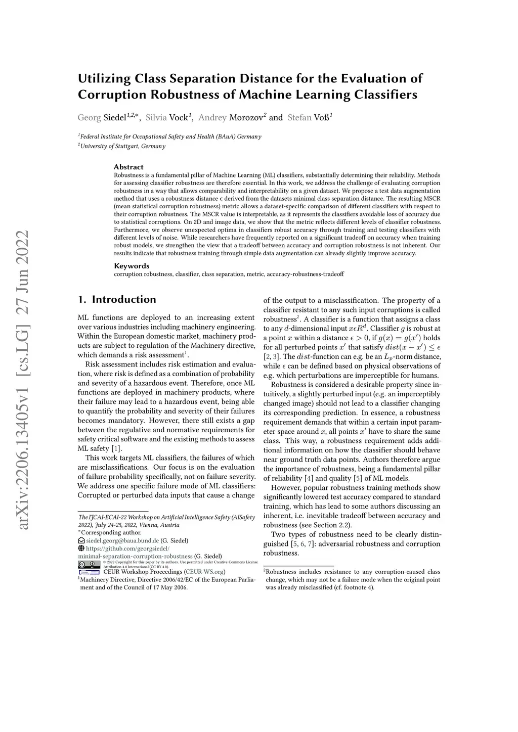 Utilizing Class Separation Distance for the Evaluation of Corruption Robustness of Machine Learning Classifiers